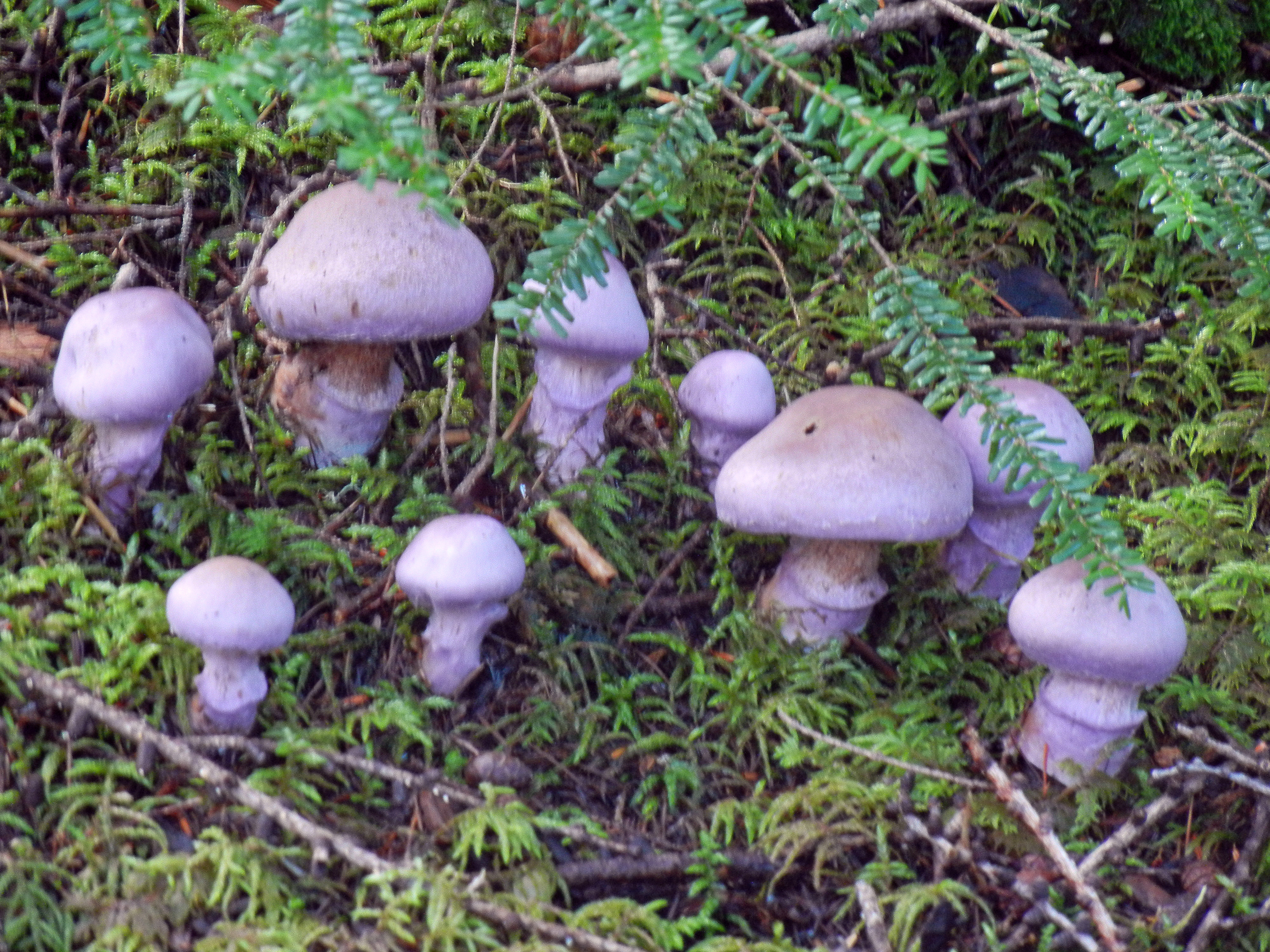 「真ん中の一人はどこへ行った!」 と体育の教師に注意されているかのように整列したオオウスムラサキフウセンタケ。