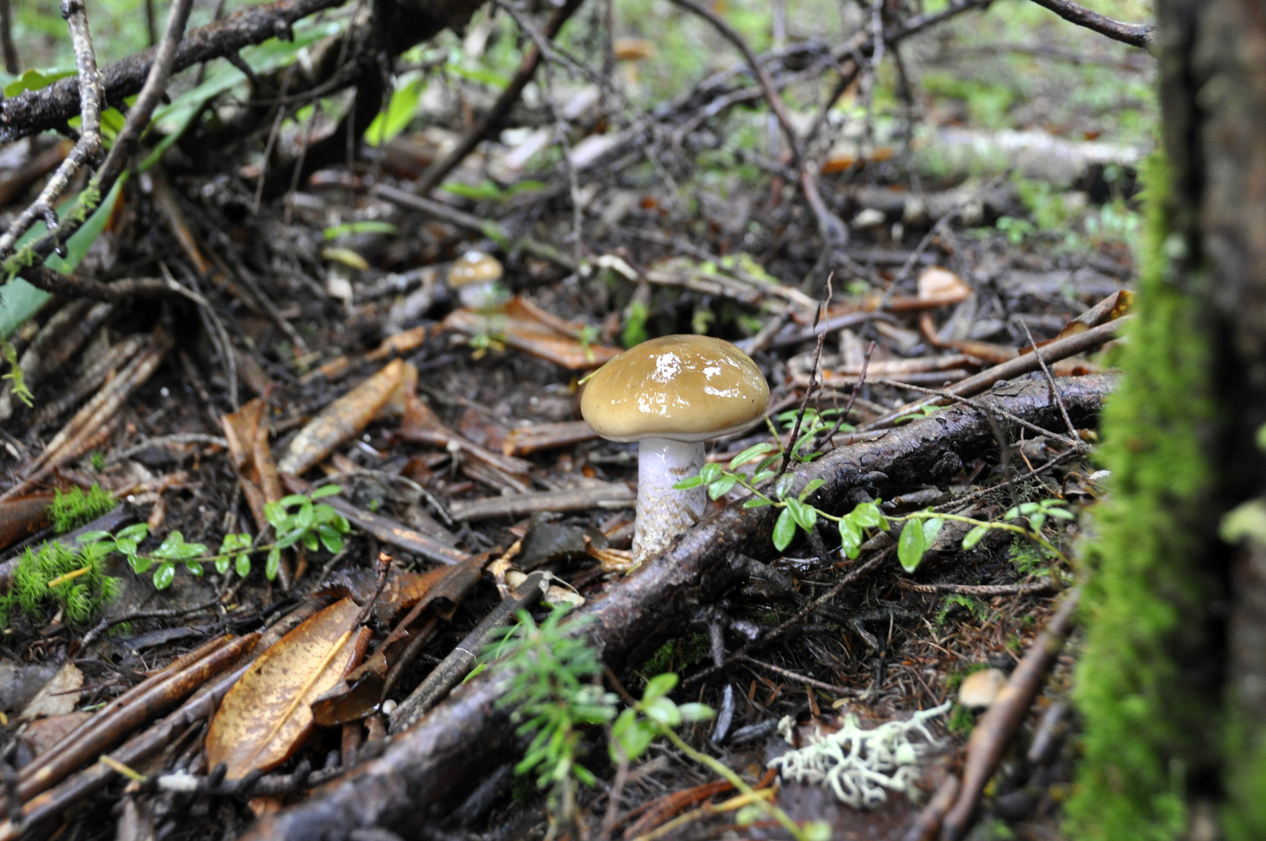 アブラシメジは八月の後半から出続けており、他のきのこが少ない中でカサのぬめりが一際目立っています。