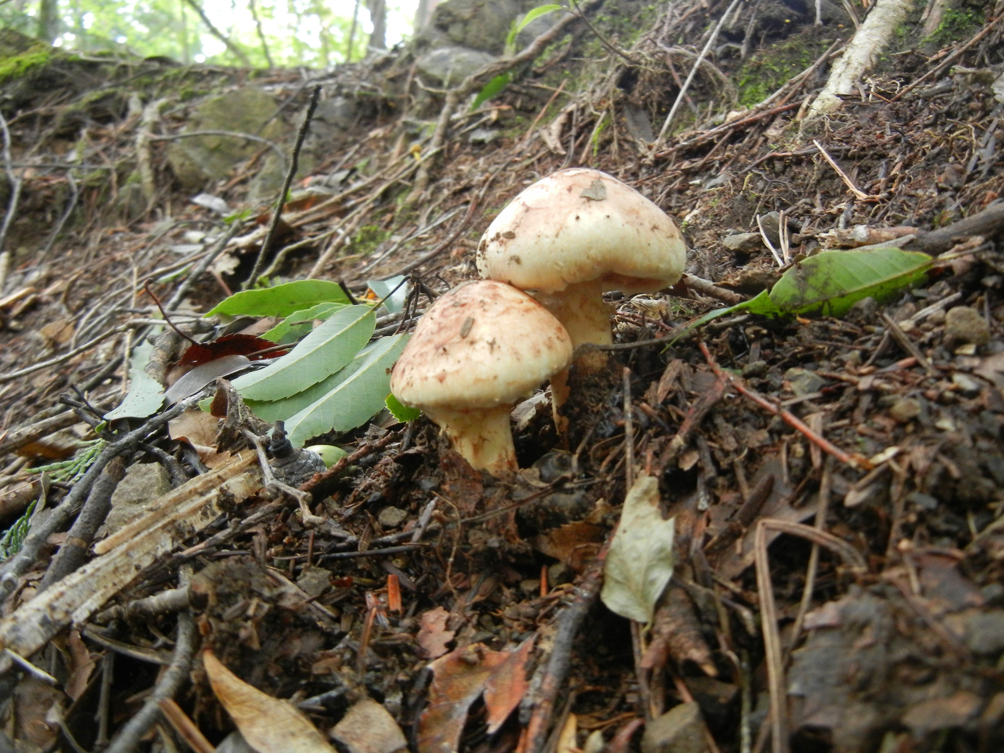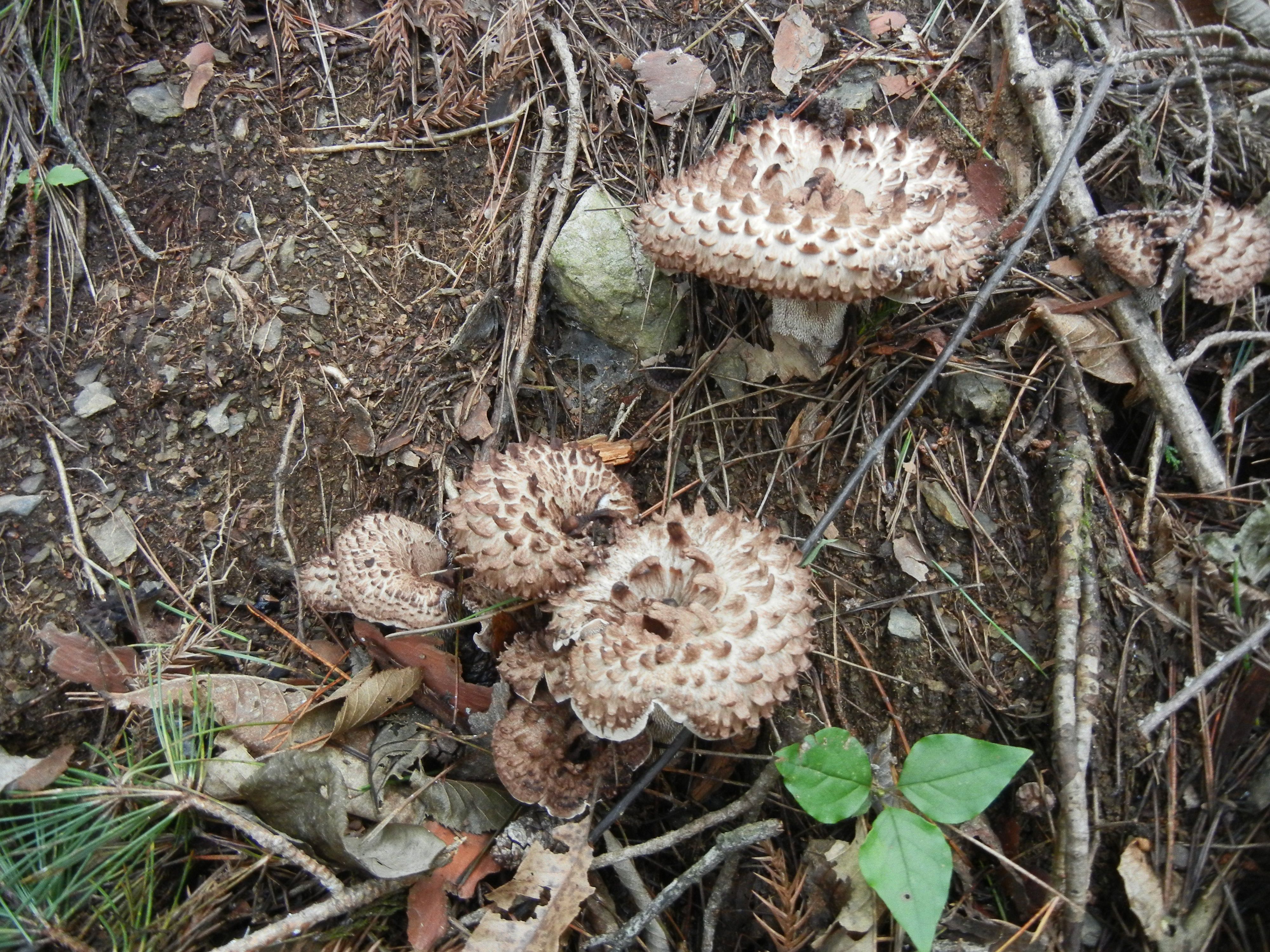 一度は観てみたいと思っていたムラサキホウキタケもあり、カメラを持った相方に「お願い」と声をかけると、「リックの脇に入れていた水が転がり落ちたのでそれどころではない」と、斜面のうんと下から返事が。