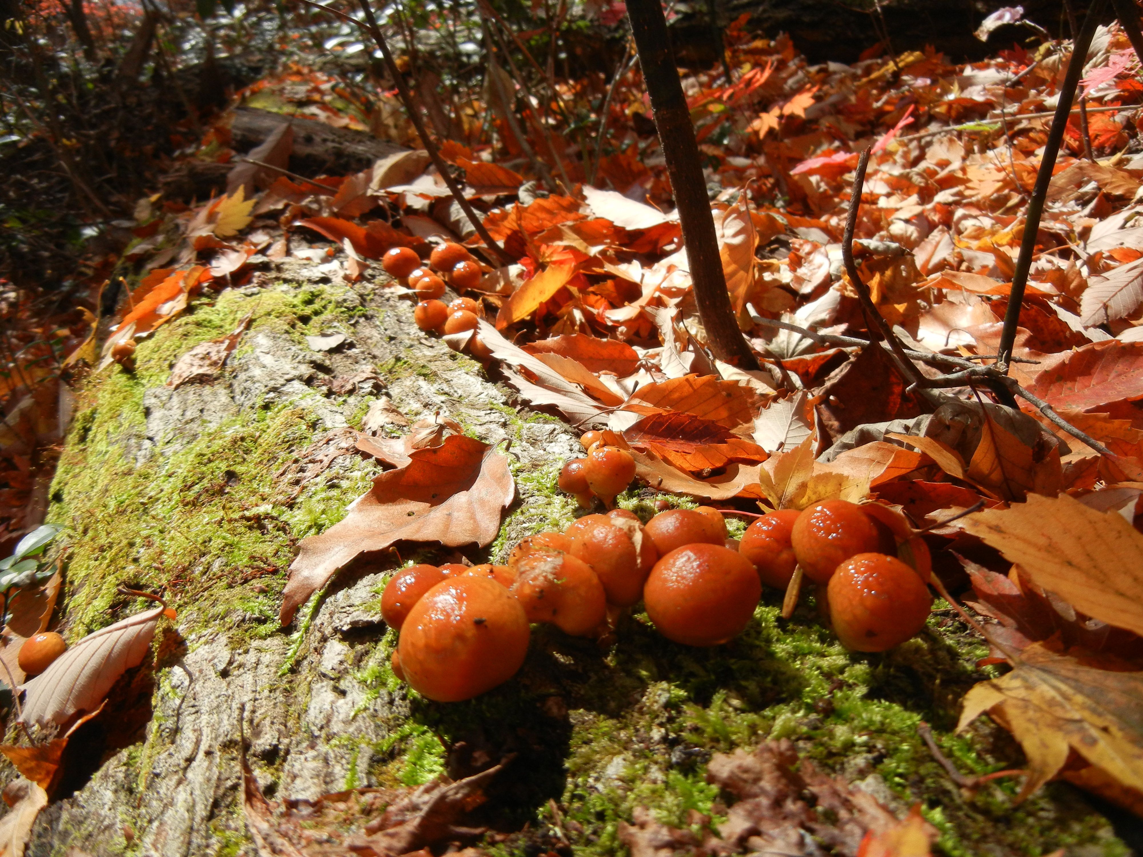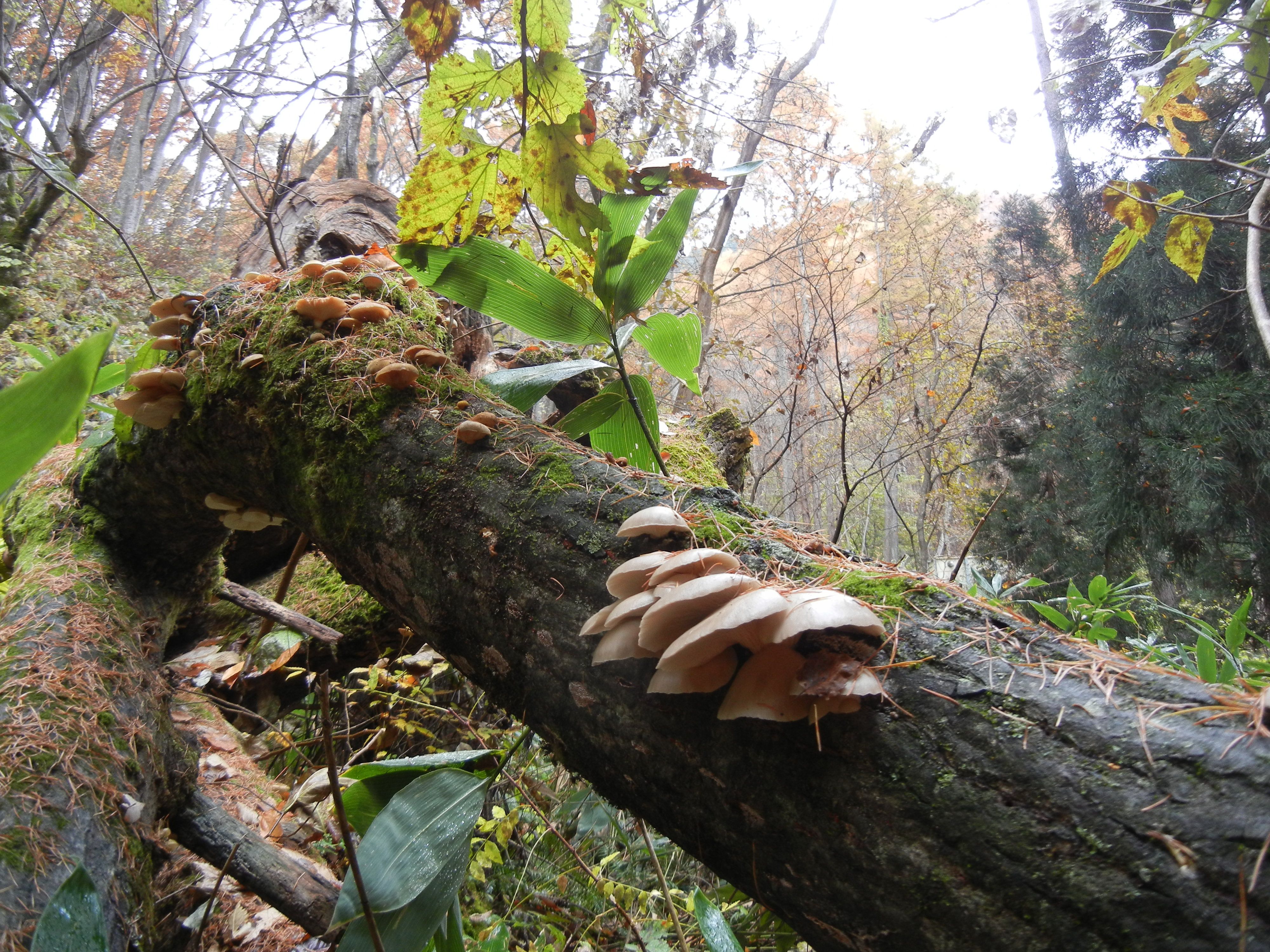 路傍の倒木を確認しながらのトボトボ歩きでは、本命のナメコは見つからないと山へと踏み入ってしばらくのち、仲間の声に呼び寄せられた場所でそれぞれナメコ発見しました。しかも数カ所で。