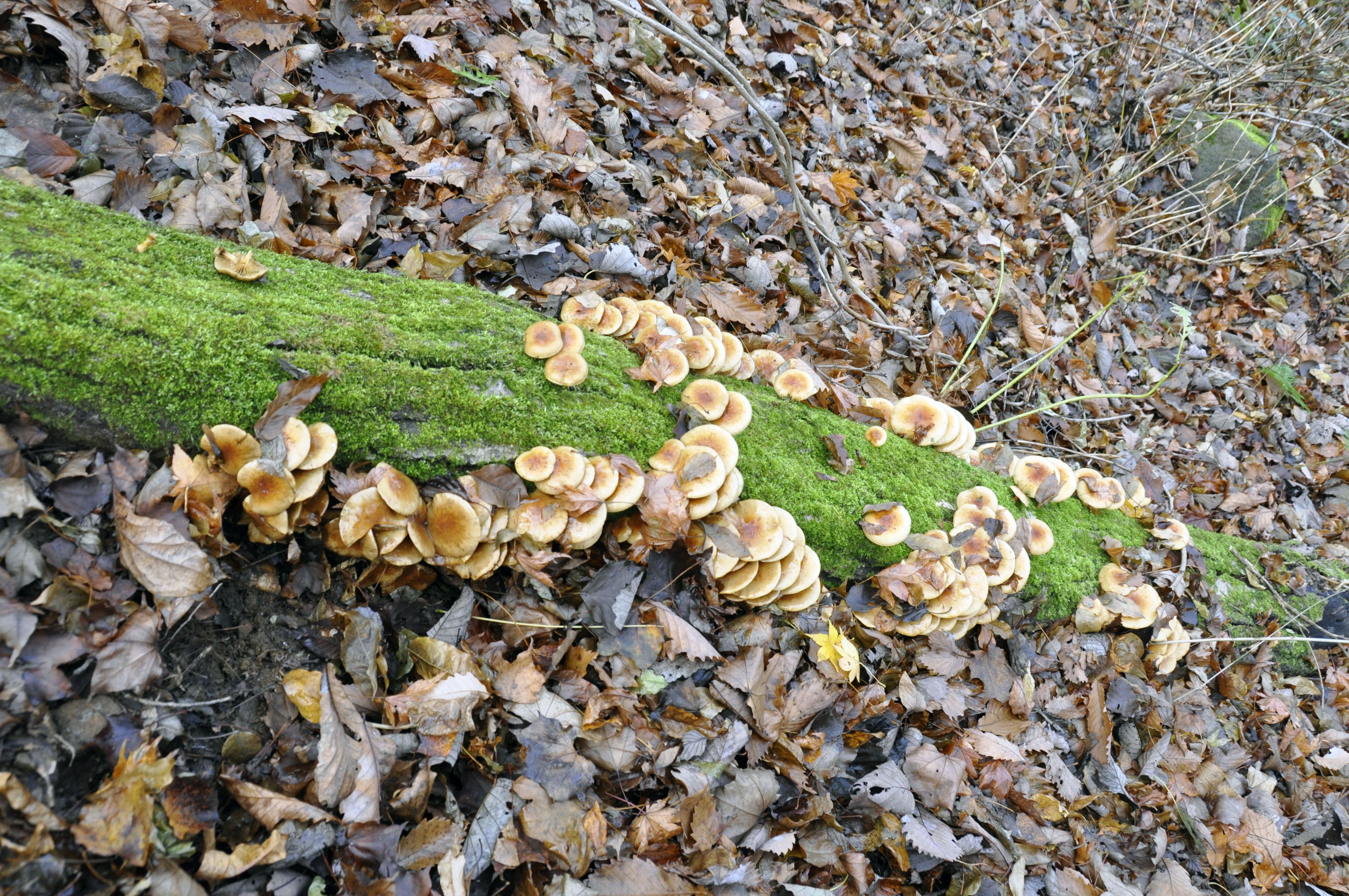 出始めのヒラタケは木と同系色ですぐ目の前にあるのに、目の焦点が合うのに少々時間がかかる。