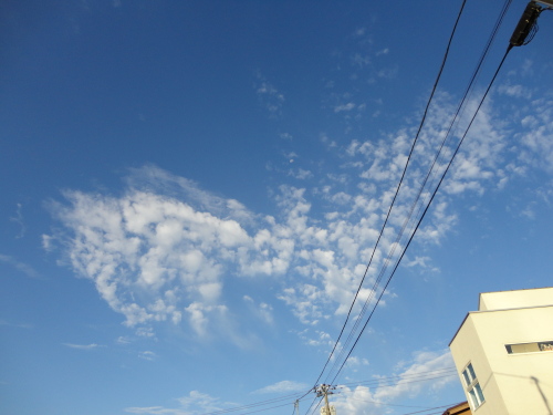 7月の下旬頃の空は、結構夏らしい高い空でした!少し、秋を思わせる 鱗雲も時々見えました。 8月に成ると雲が曇り暑い層で、豪雨が来るぞ<<<て 感じ、でも来ないで一日が終わりだ。夕焼けもない。本当は 夏空 て 青く澄んで、空が高く、かきコウリ、泡のように白い雲が、湧きあがった、感じですよね。今年 まだ一度も見ていません。8月の15、16日頃になるともう秋空に成り、風も変わります。それ前に、ニョキョ、、ニョキョと盛り上がった雲見たいです。>>>>>