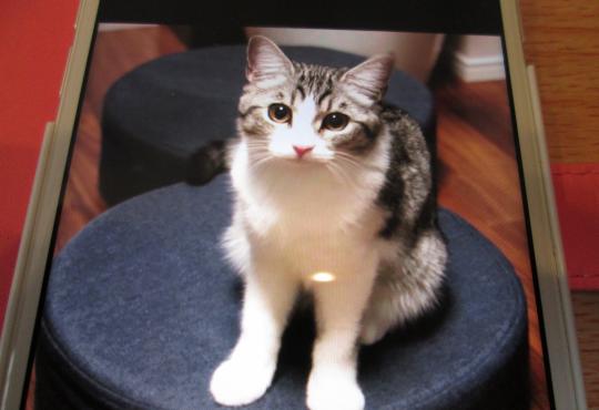 以前毛糸のボンボンを”ぺこちゃん”の前に置くと蹴って、物のの下に入れて何処にあるか