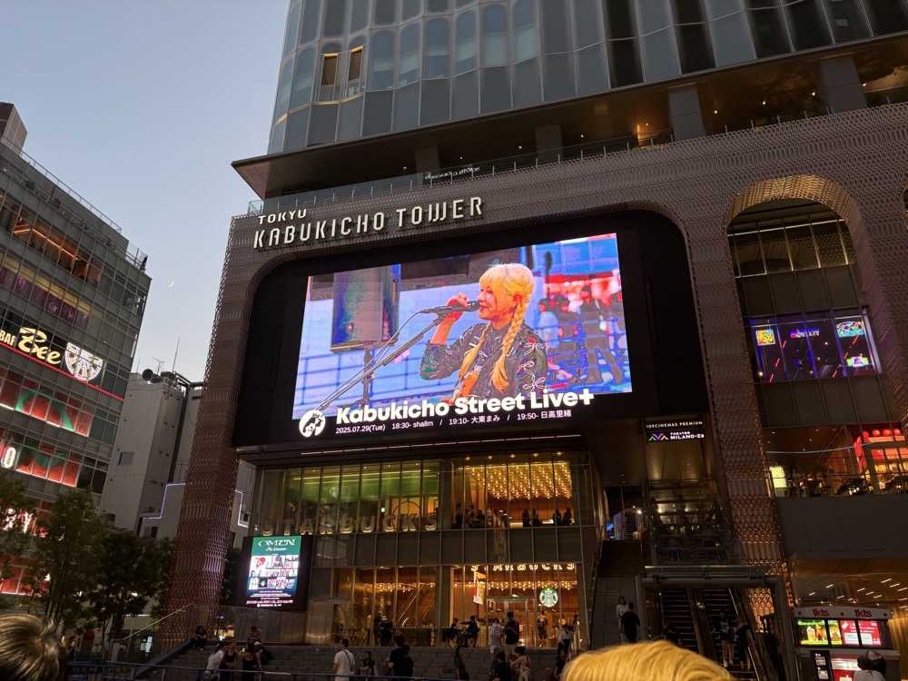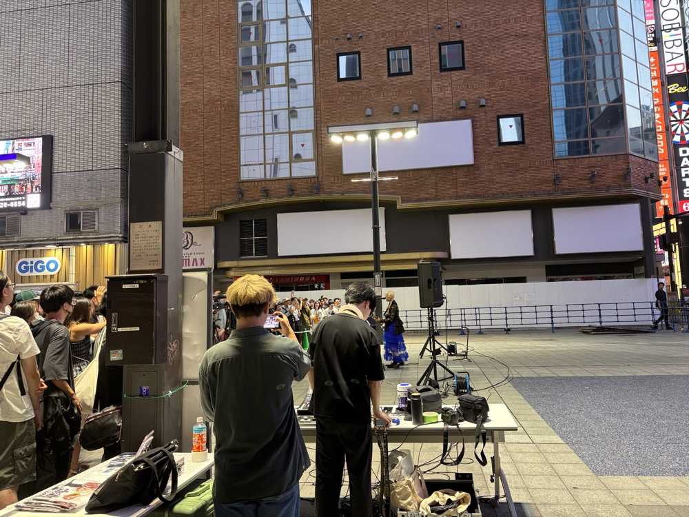 歌っている状態が後ろのビルの画面に映っていました。