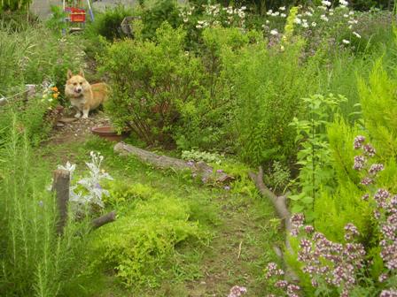 designed by *ま~ぶる*●●●●●●●●●●●●●●●●●●●2008年度版の、オープンガーデンのパンフレットを作る時期になりました。また、今年も参加させてもらえることになりました。うれしいです♪今年度も、あまり私の庭を見に来る人はいなかったし、草もぼうぼうだし、仕事をしていて、手入れがなってなかったので、皆さんをがっかりさせることになると思っていました。でも、須坂市はおおらかで安心しました♪「来年度も、今年と同じないようでいいのですか?もし変更あればメール下さい。」という、参加を前提としたメールが届きました。それで、あわてて作りました。写真は、迷いましたが、ラッキー(愛犬)も写っているものにしました。コーギーってとこが、ターシャの庭っぽいと思いませんか?!(そこだけ) 何もなかったところに少しずつ木や花を植えてきた、すべて手作りの庭です。今年で8年目になりました。「庭造りは最低でも12年は辛抱して」というターシャ・デューダーの言葉を励みにしながら、今年も少しずつ庭造りを楽しみたいと思います。畑と庭が一体になっている、ベジタブル&ナチュラルガーデンです。ターシャの庭を参考にしています。●●●●●●●●●●●●●●●●●●●