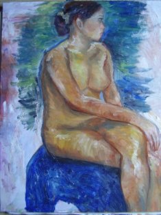 絵は、大好きなんですが、仕事が忙しくて、書くのは夏の同好会の夏期講習のときただ1回だけ。の最近です。今年も、やってきました。私は、絵を専門に勉強したことはなくて、ただ、好きなだけで、油絵の具を買ったり、道具をそろえていったので、年に一度のこのときに参加することに意義があると思っています。3日のうち2日だけの参加。子どもが熱出しちゃっていたから・・・残念だったけど、2日で何とかガンバッタ!!これは、30号キャンパス今年の挑戦は、30号のキャンパスに描いてみたこと。でも、だめだ~あとで上からつぶしちゃおう・・・