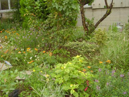 7月の終わりから、毎日草を取っています。もちろん、とったところはきれいになるけど、草の威力に追いつきません!!みんな、手伝って~~!!と、家族を怒っているけど、みんな、気が向いたときしか手伝ってくれません。(それでも、やってくれるだけいいか。)毎日、汗びっしょりになりながら、蚊に食われながら、他の家事をおろそかにして、やるべき仕事もせず、草をとりました。そろそろ、取りまくった年休も終わり、仕事にでることになりました。ああ、いやだいやだ庭の眺めですが、花が目立ってないですね。写真の左側は畑になっていて、その隣は、草畑になってます。そっちもなんとかしなくては!!