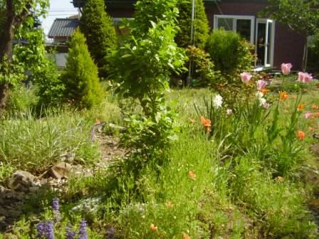 ゴールデンウィークですねえ。といっても、もうじき終わりに近づいてきているような・・・この休みは、子どもの野球の応援と庭造りの毎日です。昨日は、草置き場の下の方のミミズがたくさんになった土を畑に入れたり、草をとったりしました。こんな感じです~少しは、オープンガーデンっていってもいい感じになってきているかな~??なんて思ったりして・・・手前の方は、これから畑にするので草取りに励まなきゃ~~西の方はこんな感じ