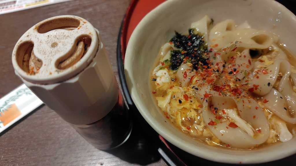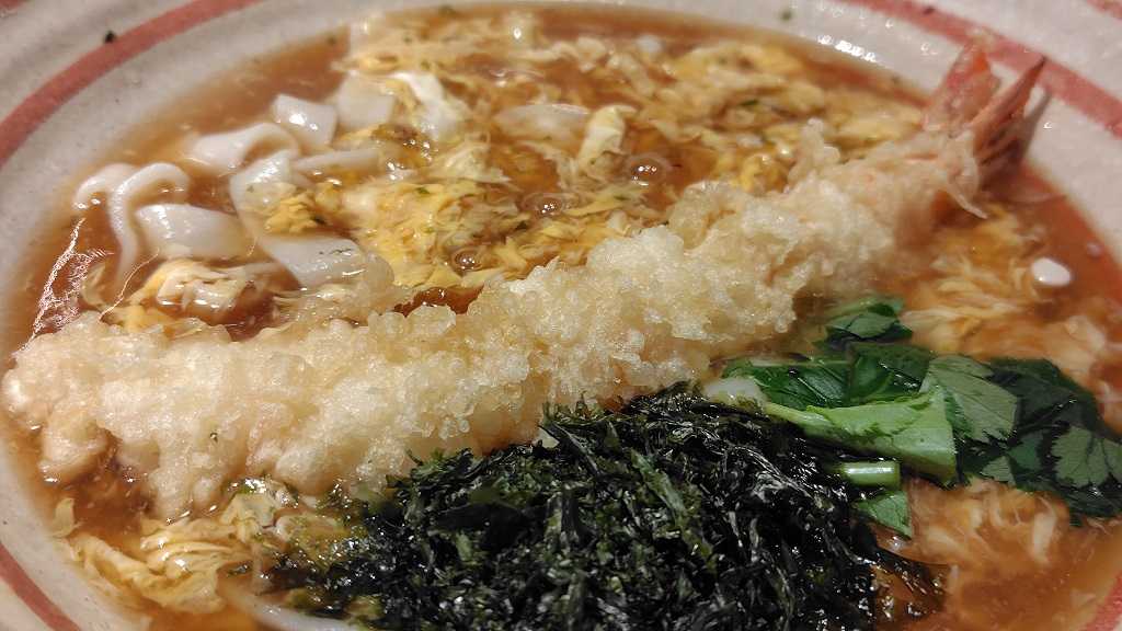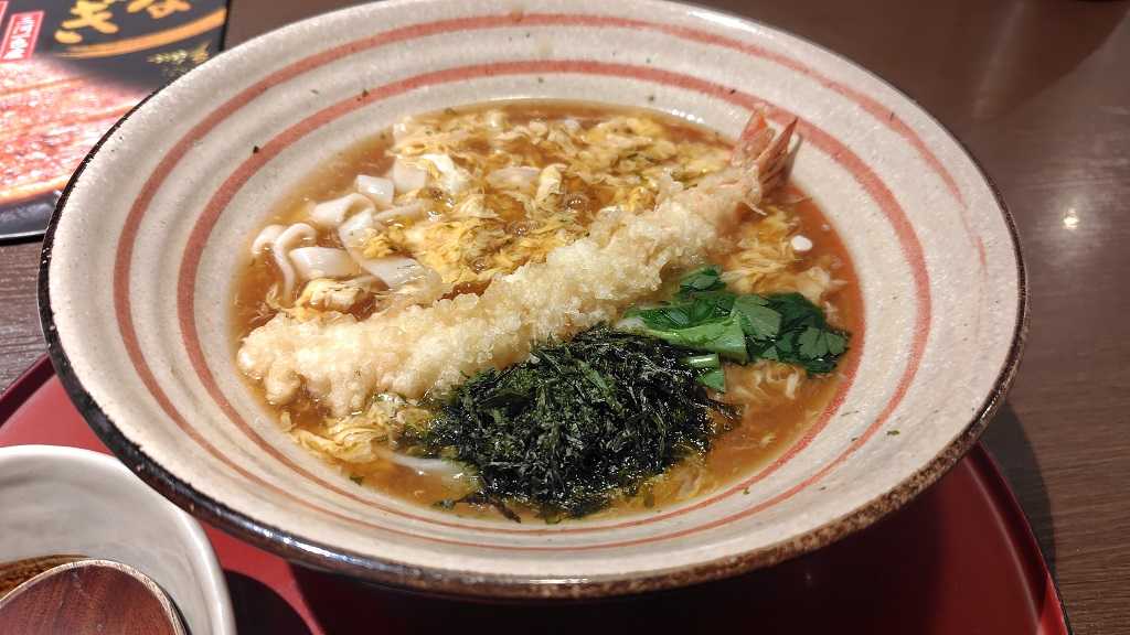 寒い日でしたので、温かいきしめんにしました。海老は1本でお願いしますって、タブレットからの注文です。