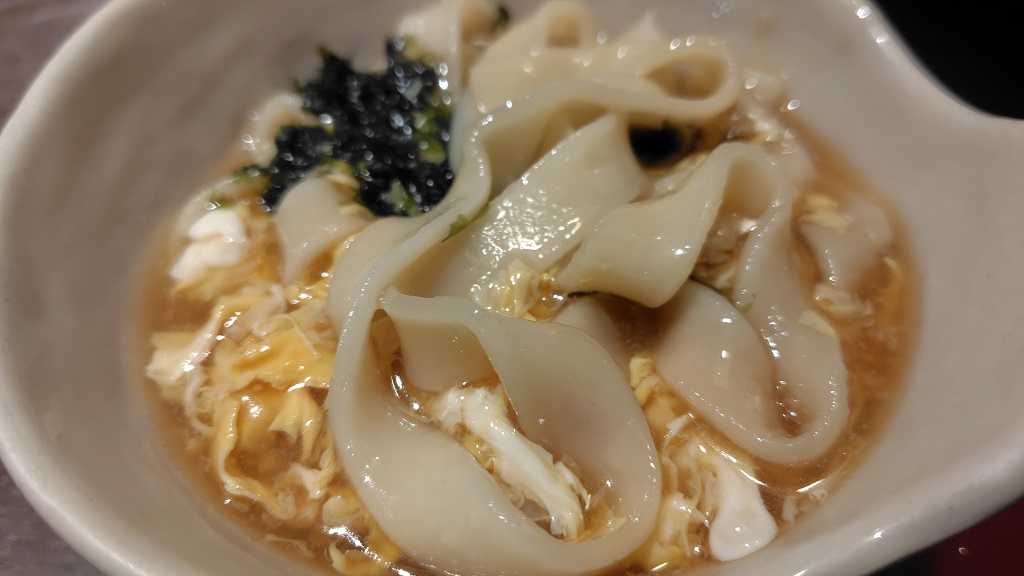 とろみのついた玉子とじの汁は、少々甘めかな。でも、悪くありません。
