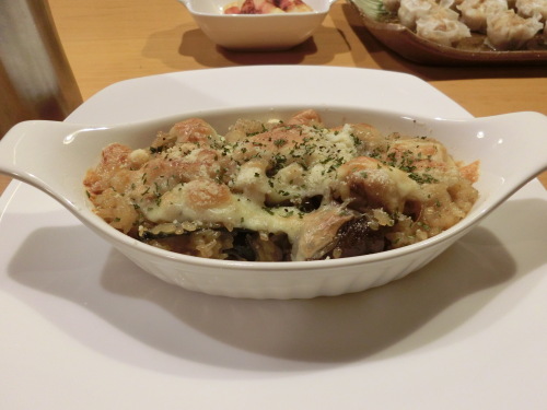 3日に美味しくいただいたすき焼き、昨日昼にうどんでも入れて食べようかと思っていたのにお馬鹿のパピーお弁当を買ってきた。しゃあないので夕食にカレーリゾットにしようと思っていたが、散歩から帰ってみると女房がもう腕を振るっていた。すき焼きのリゾットまではパピーと同じ考え、でも、カレーパウダーを入れるのではなくグラタン皿へ・・・。上にチーズ、そうドリアです。すき焼き食べてる時には感じませんでしたが少し甘過ぎかな、でも美味しいですよ。シュウマイとジャガイモのベーコン巻を添えて出来上がり、簡単節約夕ご飯でした。昨日は夕方の散歩から帰って焼酎が切れてるのに気が付き焼酎買いに、このおかげで歩数が伸びました。昨日の歩数 19,091歩 今年の1日最高歩数 33,597歩 年間平均歩数 15,539歩 最低歩数 2,063歩 自分の歩数にニコニコしてたのに南国さんの36,000歩という数字を見てビックリ。やばいかも・・・。