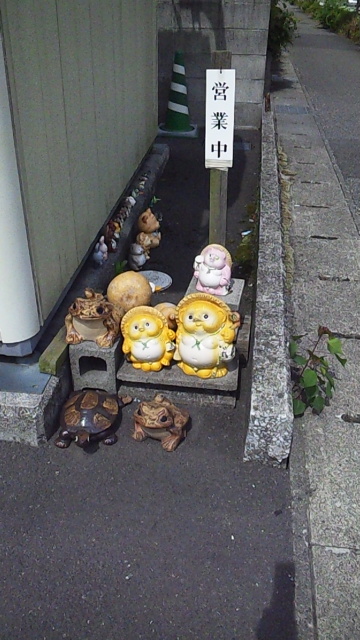 精米機の横に沢山の置物、写ってないけれど後ろにだんだん小さくなる置物、最後には昔流行ったお菓子のおまけの動物のフィギュア、いたずらで取って行かれないのかな?なんて思ってしまいます