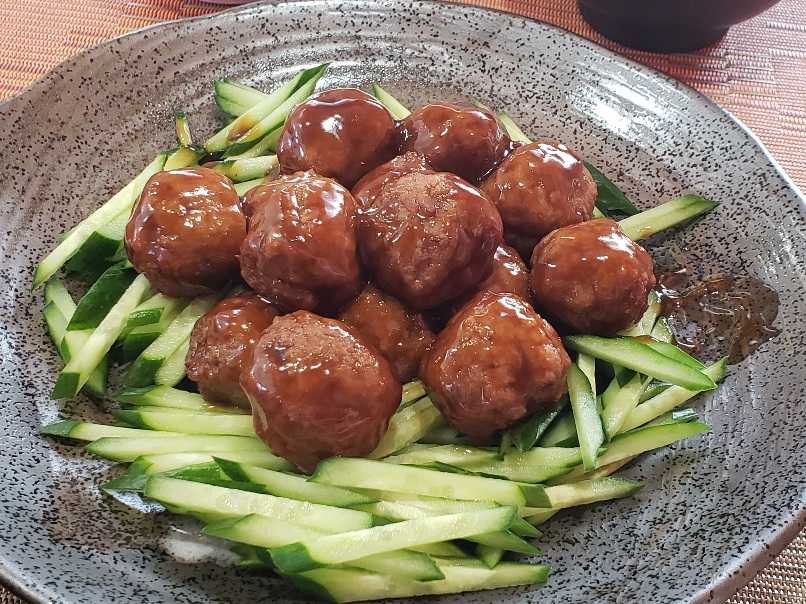 甘酢あんがかかった肉団子、簡単だからお昼にいいのよね~