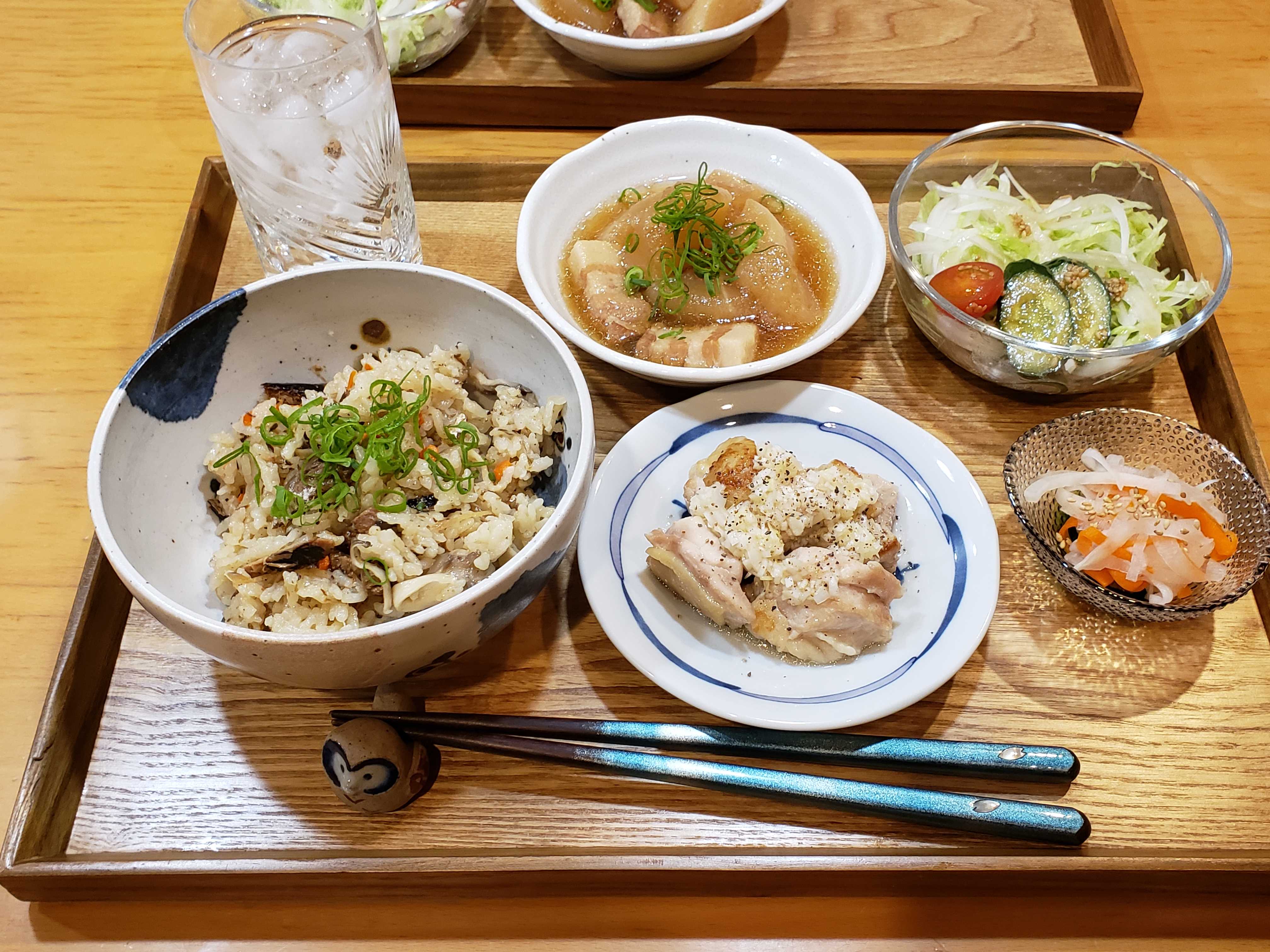 夕食は炊き込みご飯