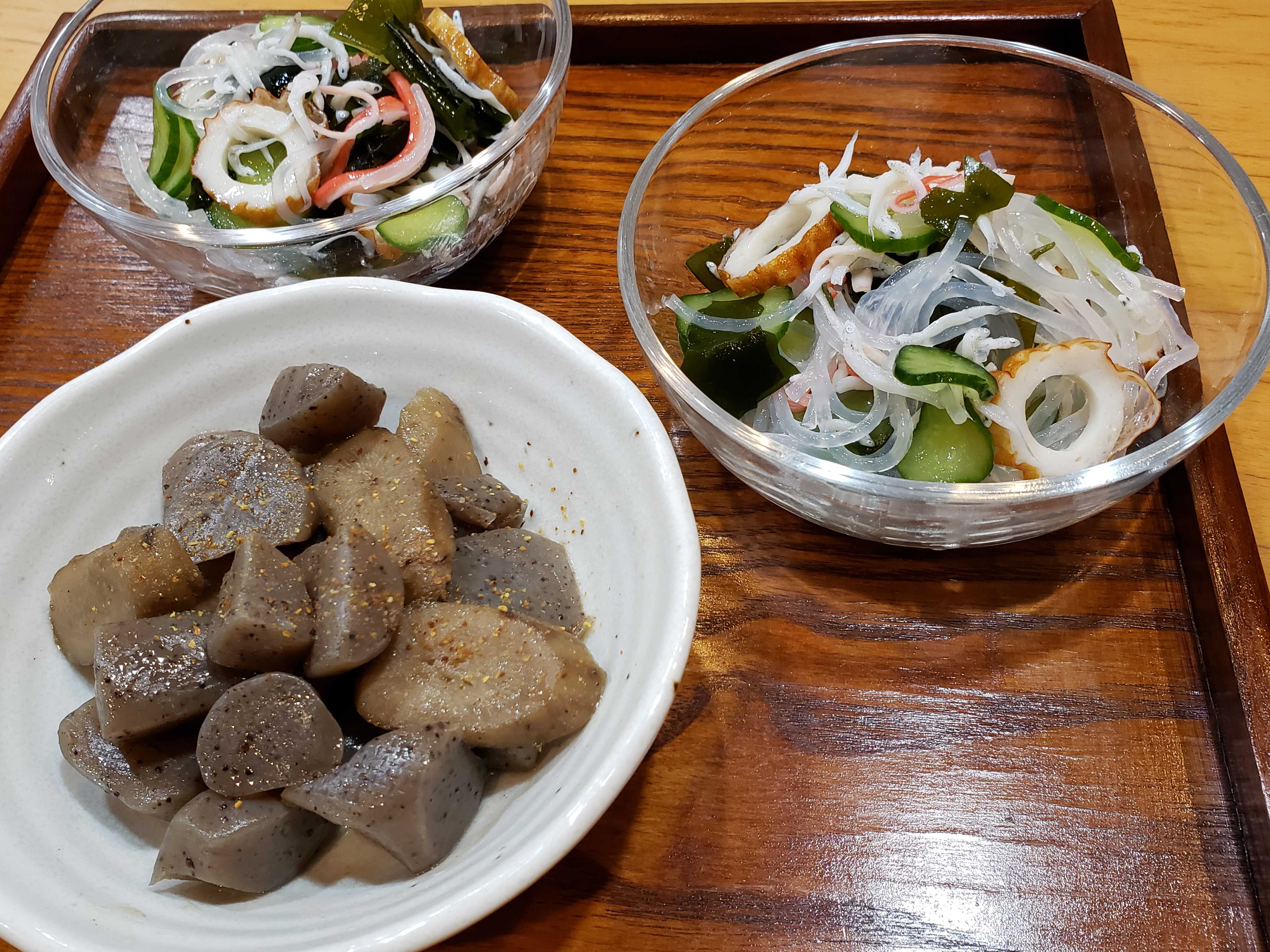 ごぼうとこんにゃくの煮物に春雨入り酢の物
