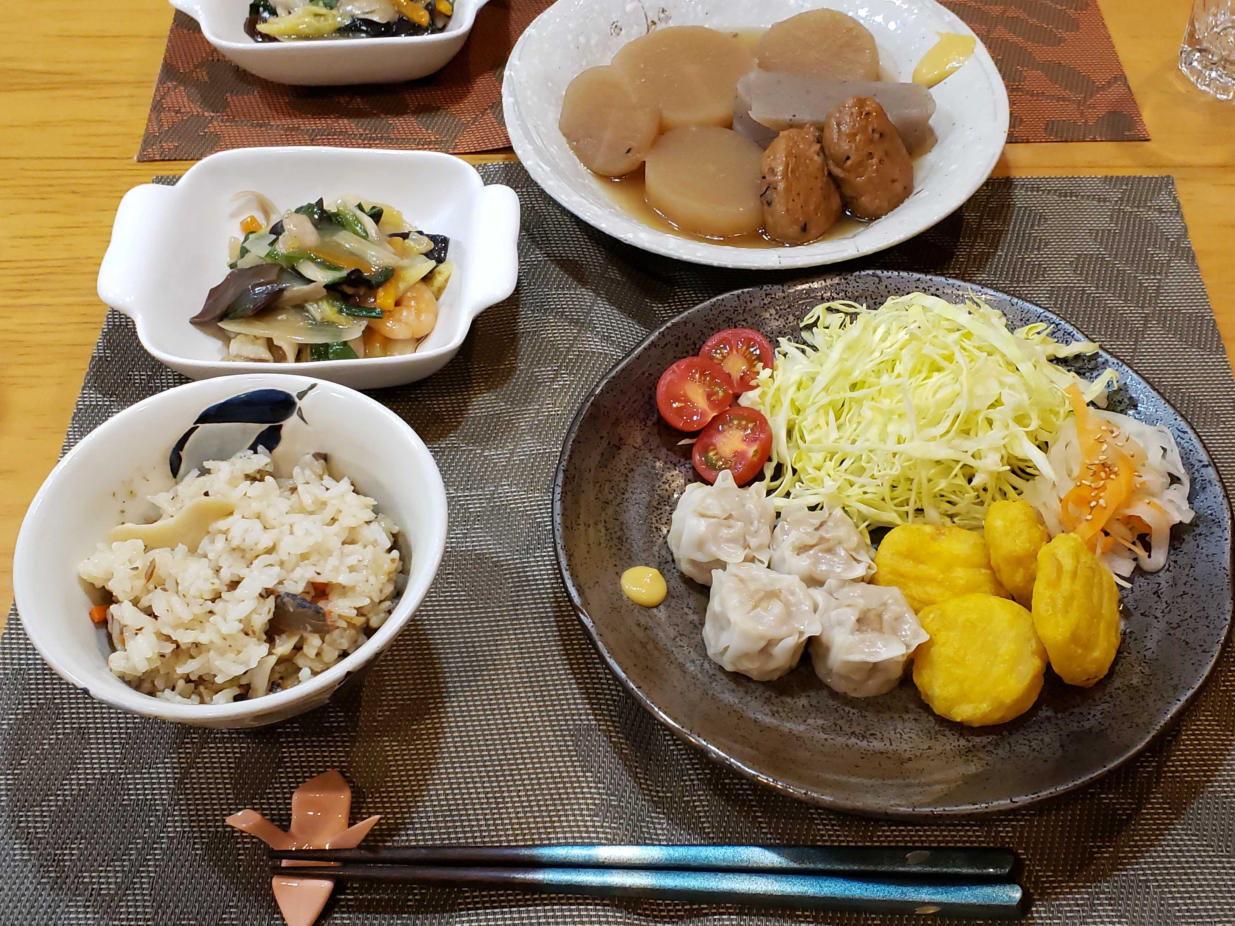 夕食は冷凍してた炊き込みご飯をと冷凍庫の整理をしてました。