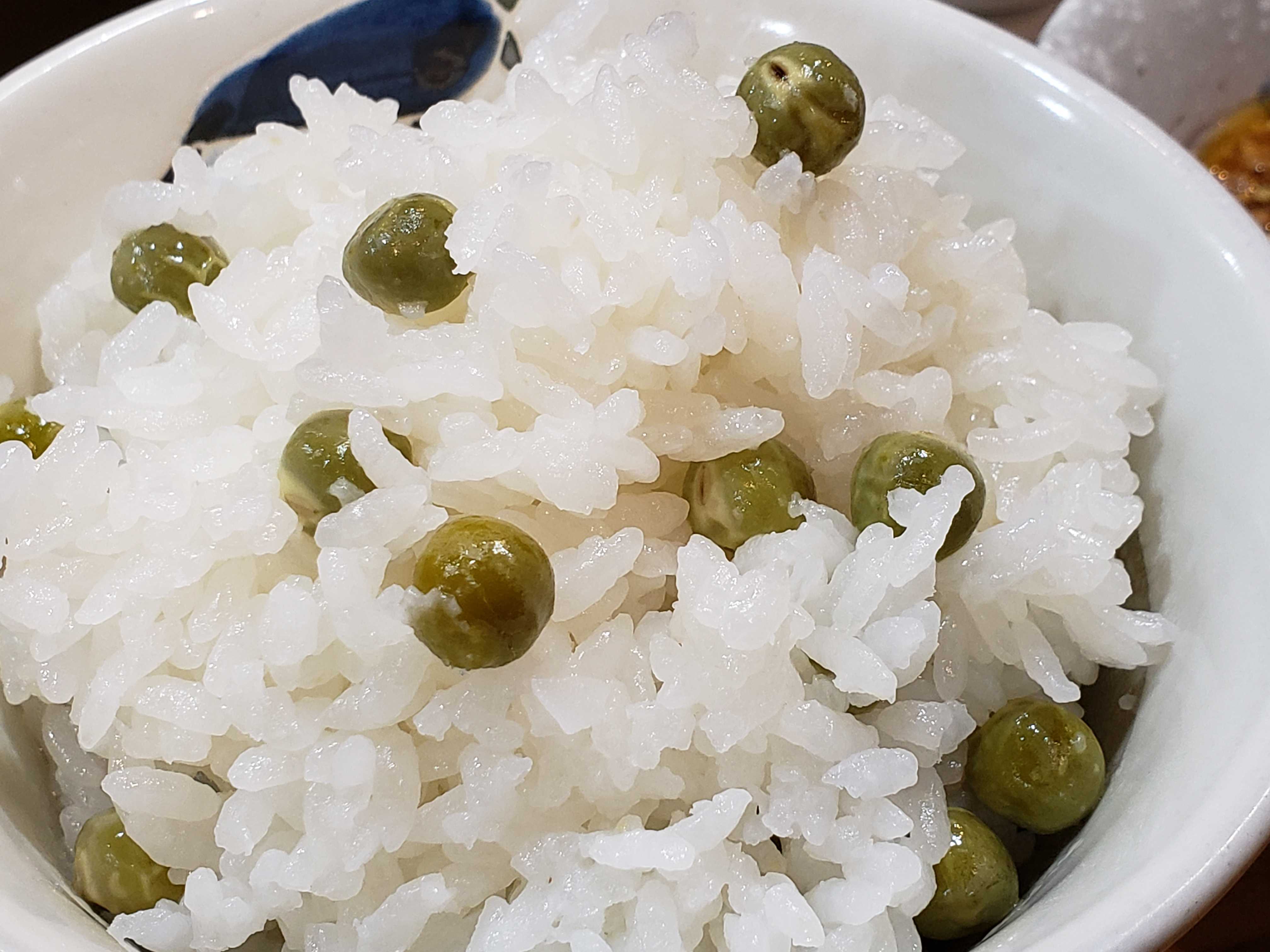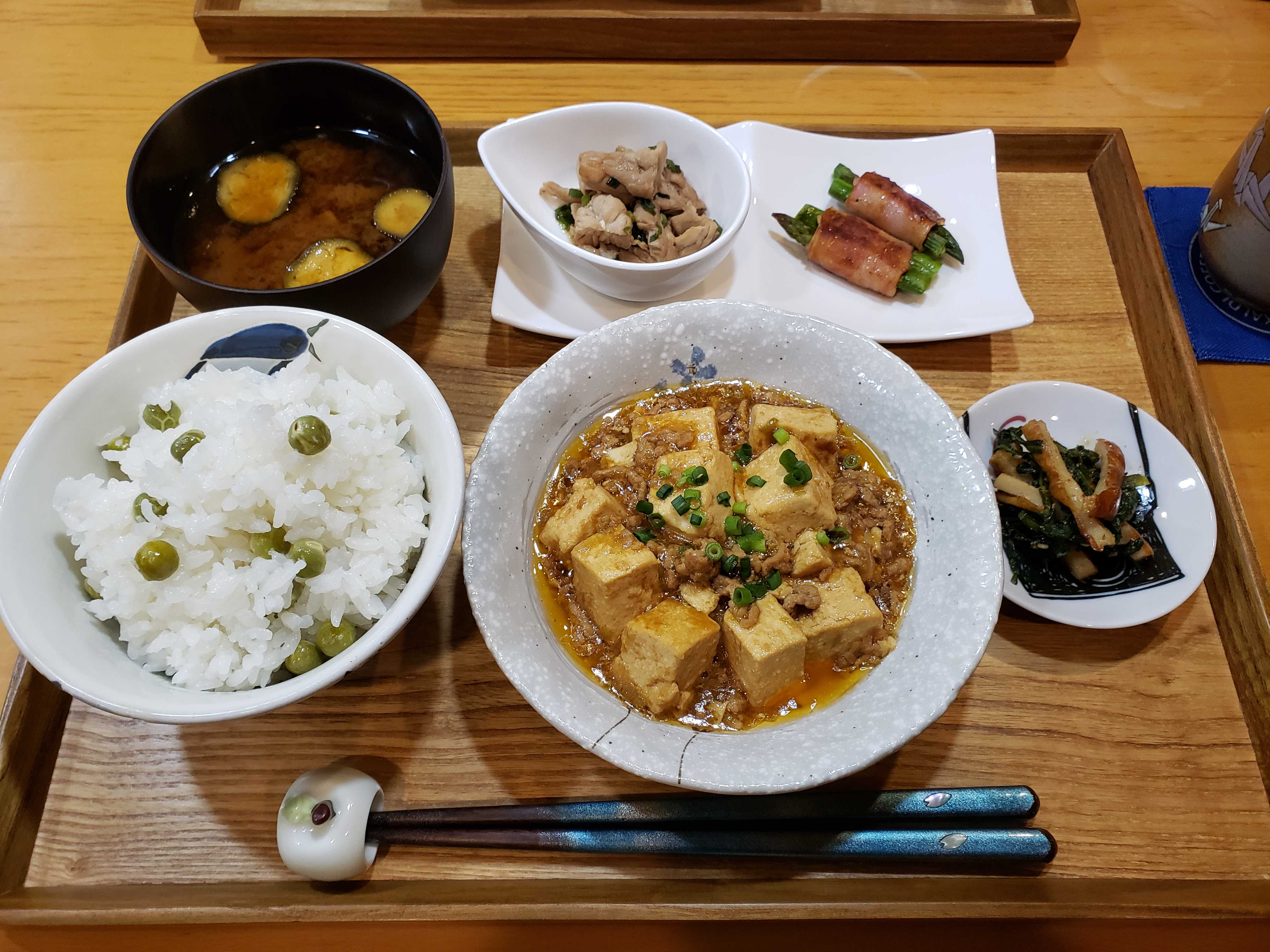 夕食のメインは麻婆豆腐、いや、豆ご飯かなぺろり