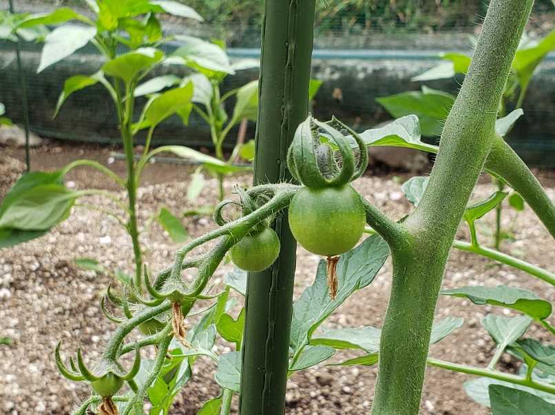 ピーマンやパプリカ、トマトの脇芽かきと誘引など、
