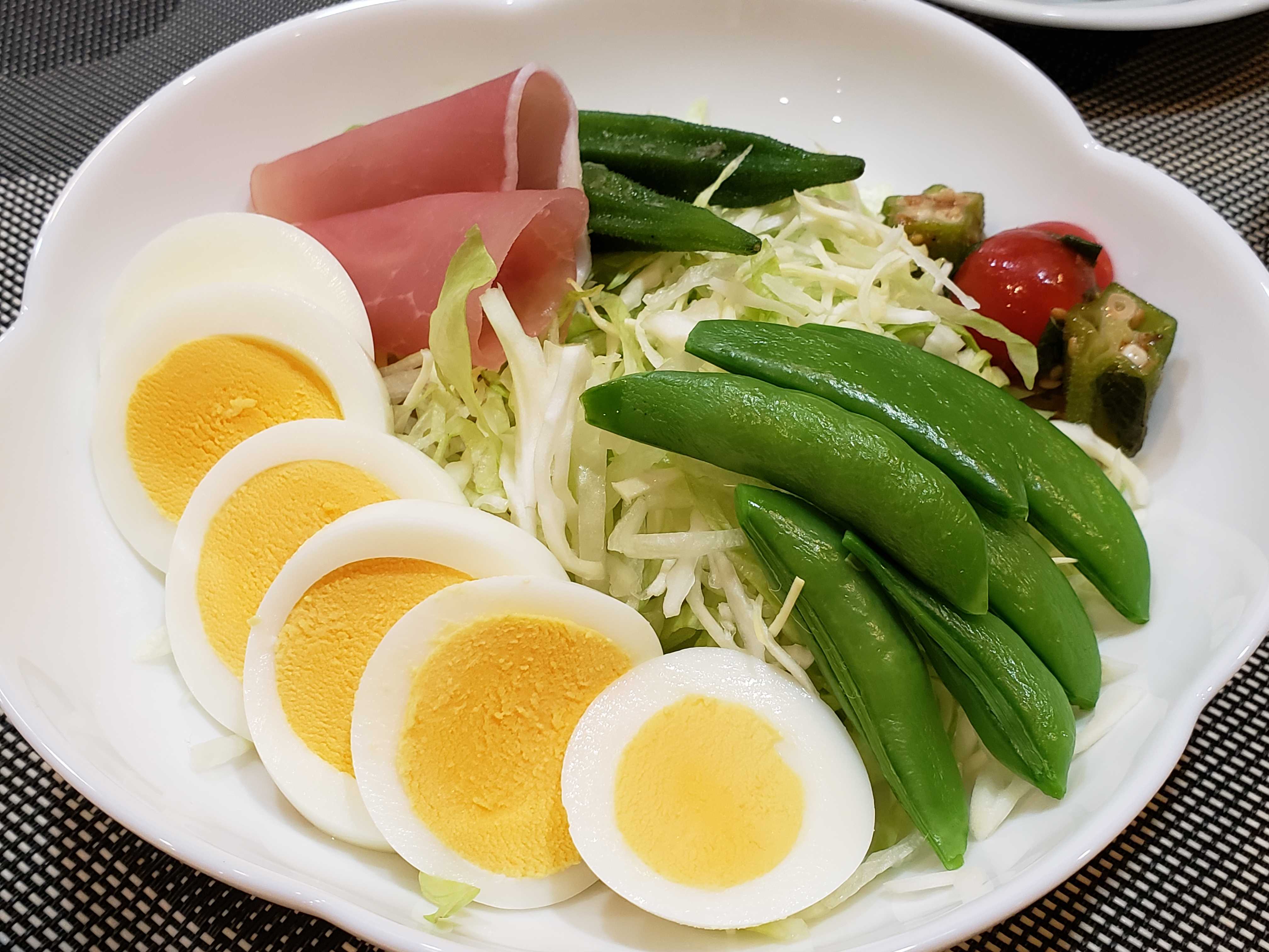 何故かそう思い、卵を茹でて、スナップエンドウを茹でて・・・。