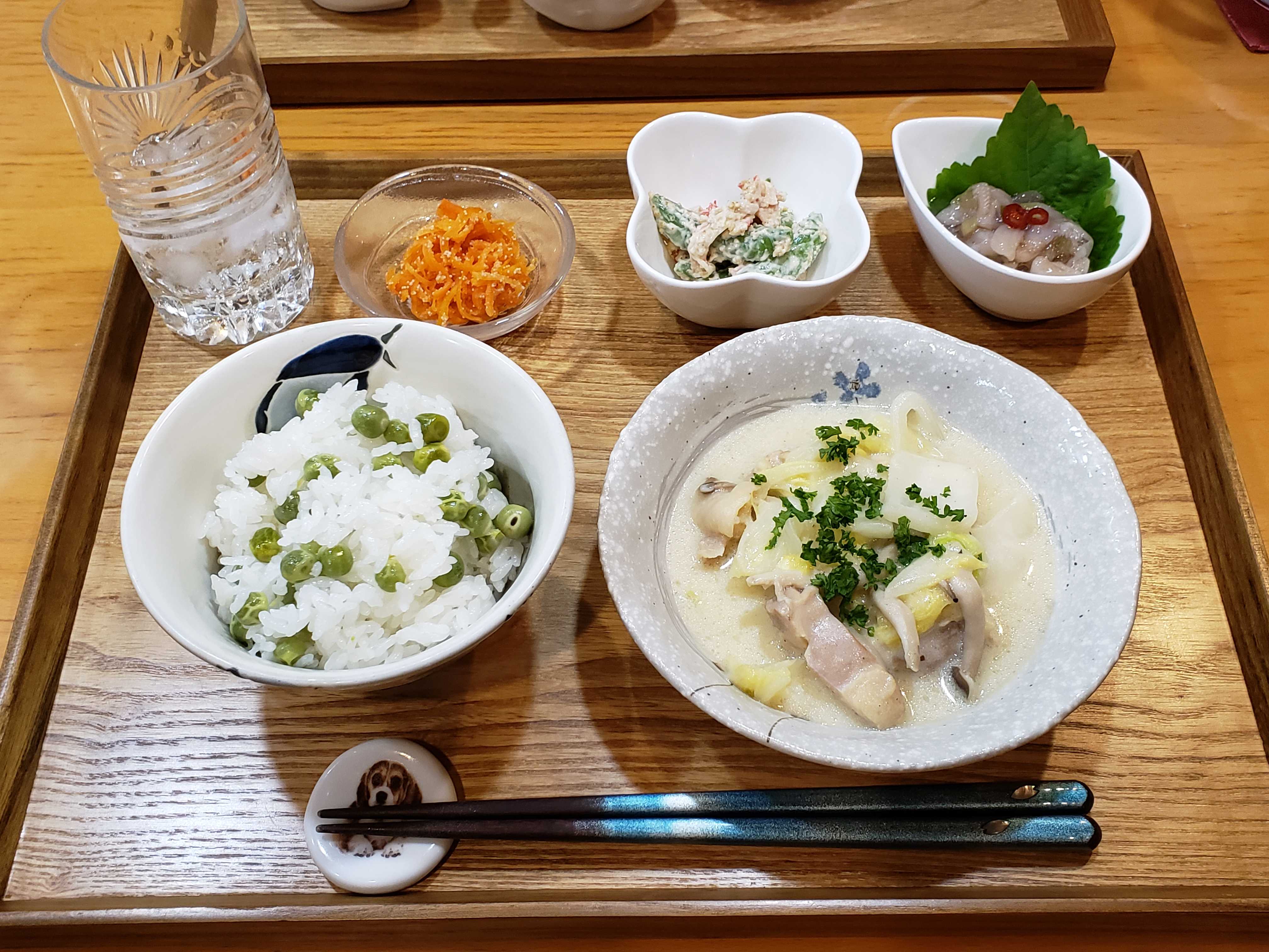 おまめさん多めの豆ご飯をセット、そしておつまみも
