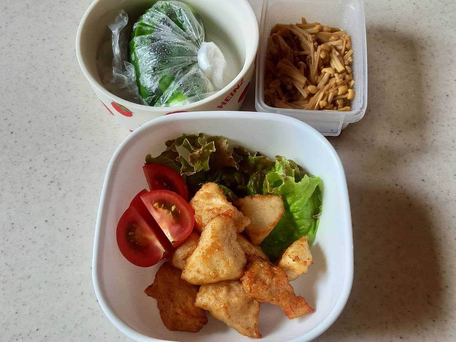 おかずは唐揚げとウインナーと卵焼き、なんか懐かしいな~。