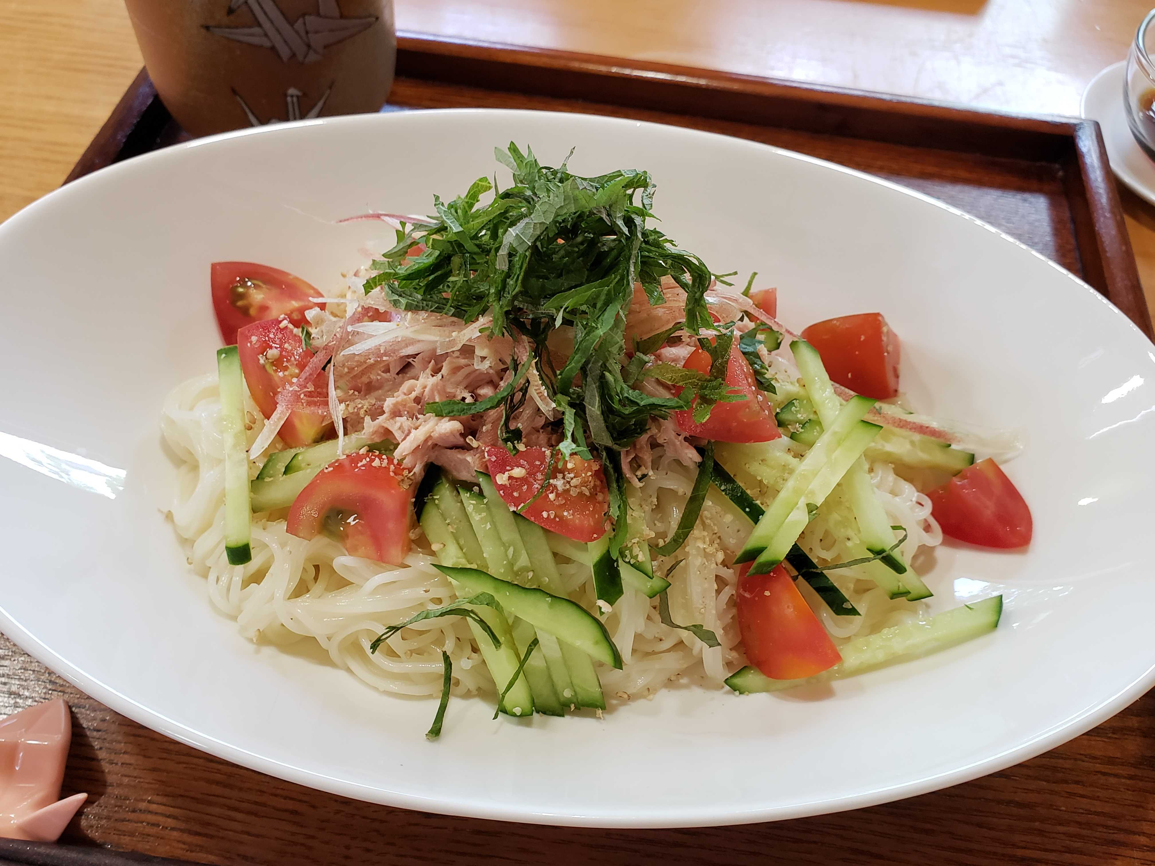 お昼はツナとトマトのぶっかけ素麺