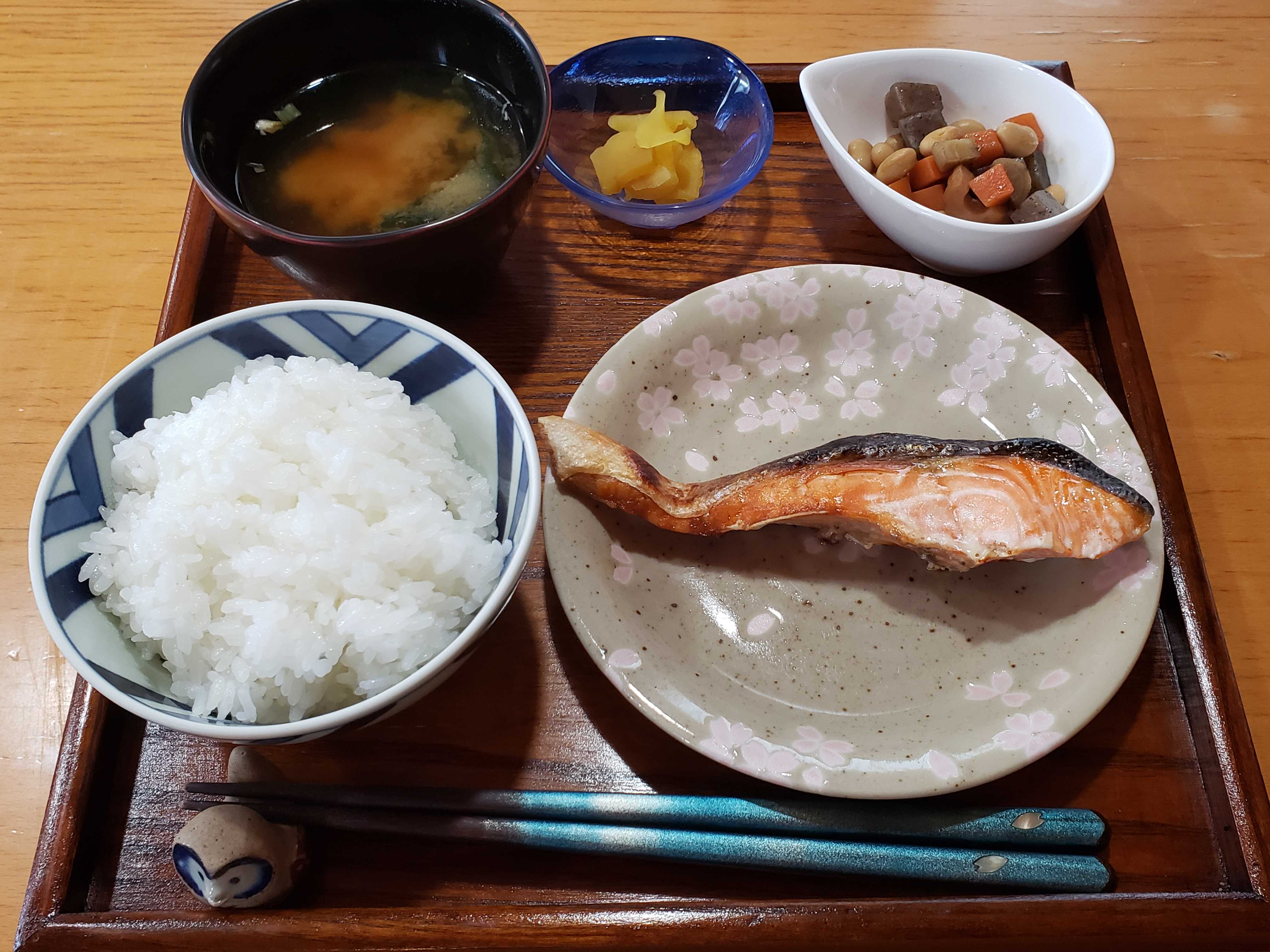 お昼は鮭定食