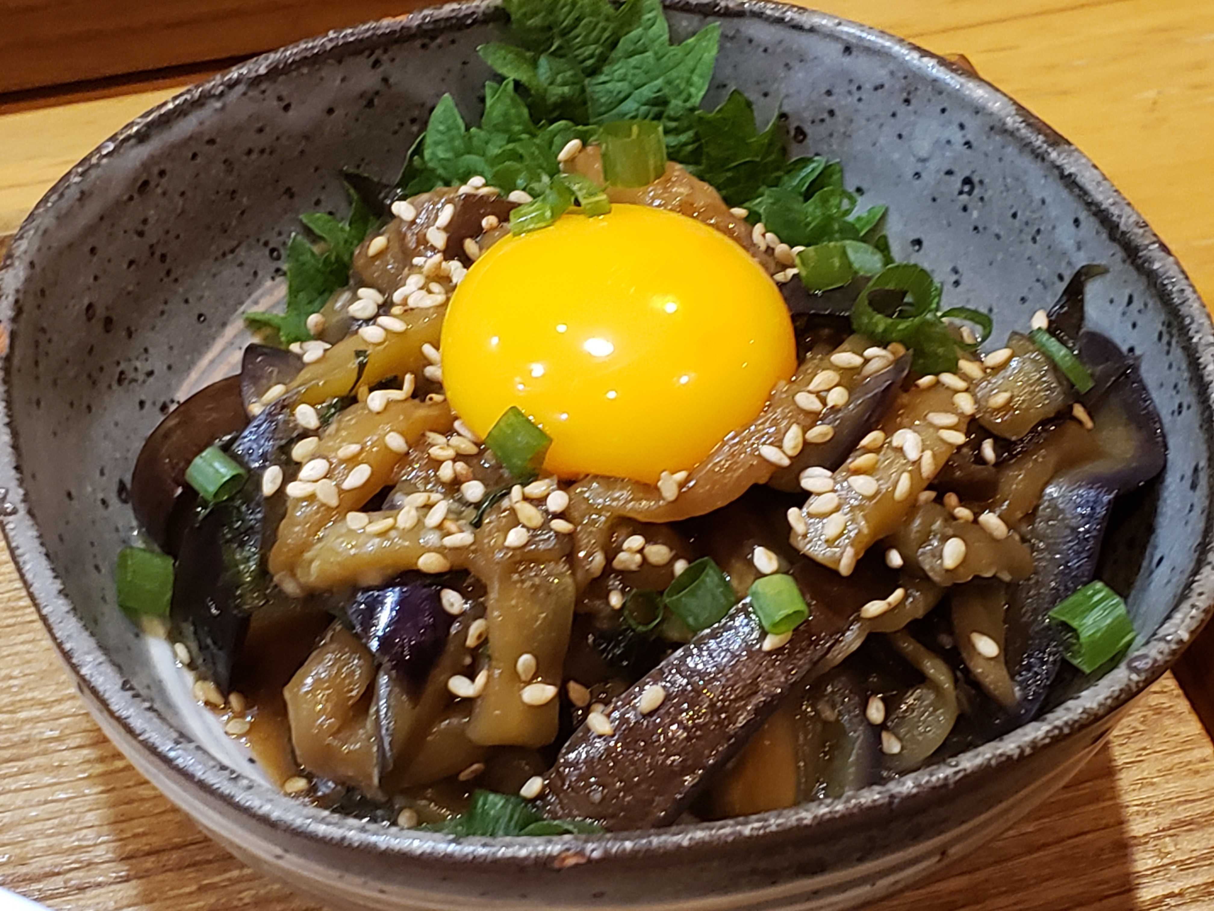 なすユッケは久しぶり、 ご飯に合うよぺろり