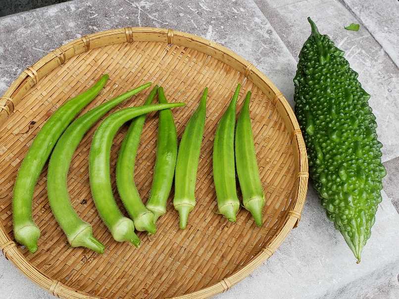 今元気のいい茄子とオクラ、