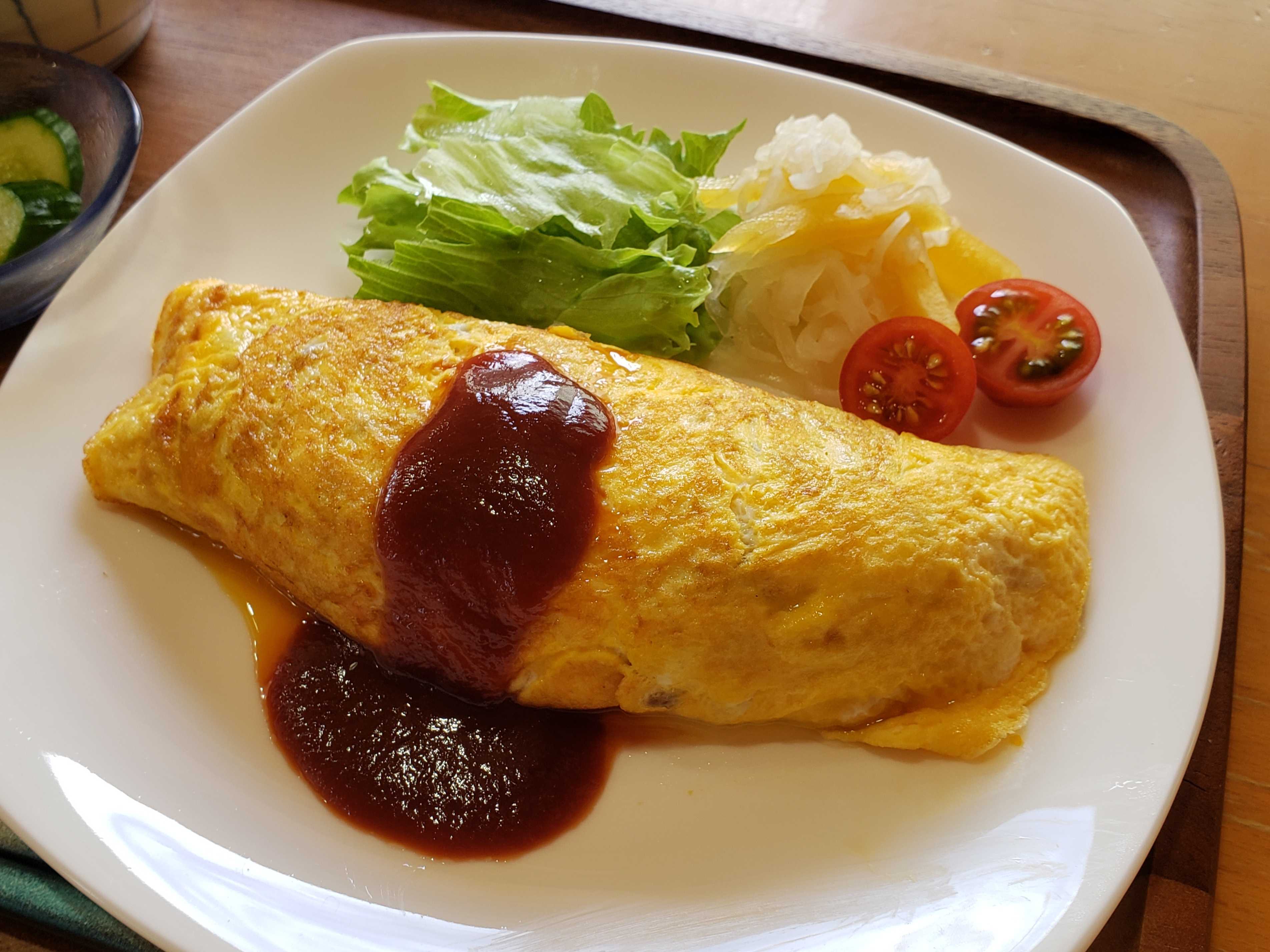大きめのオムレツ、お腹が張っちゃって動けない大笑い
