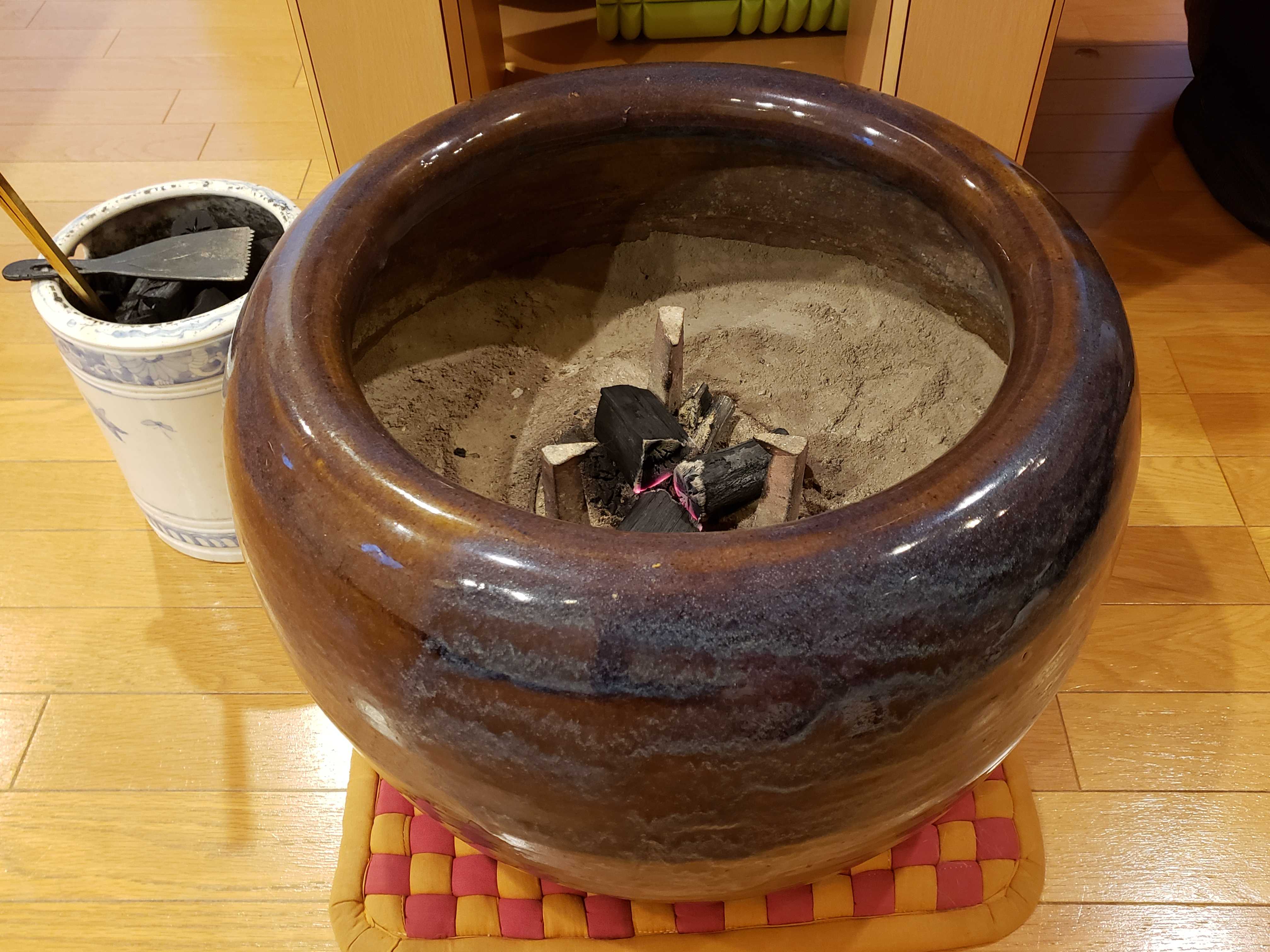 夕方、なんだか肌寒いと火鉢に火を初入れ、