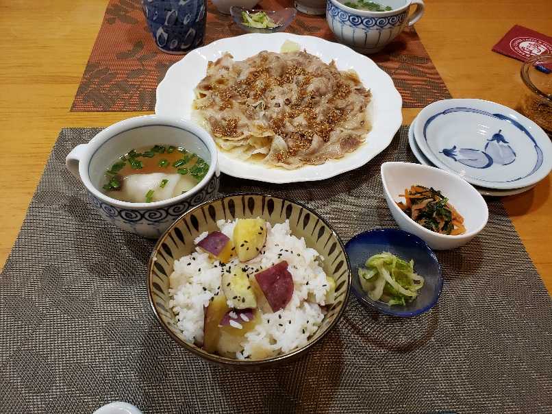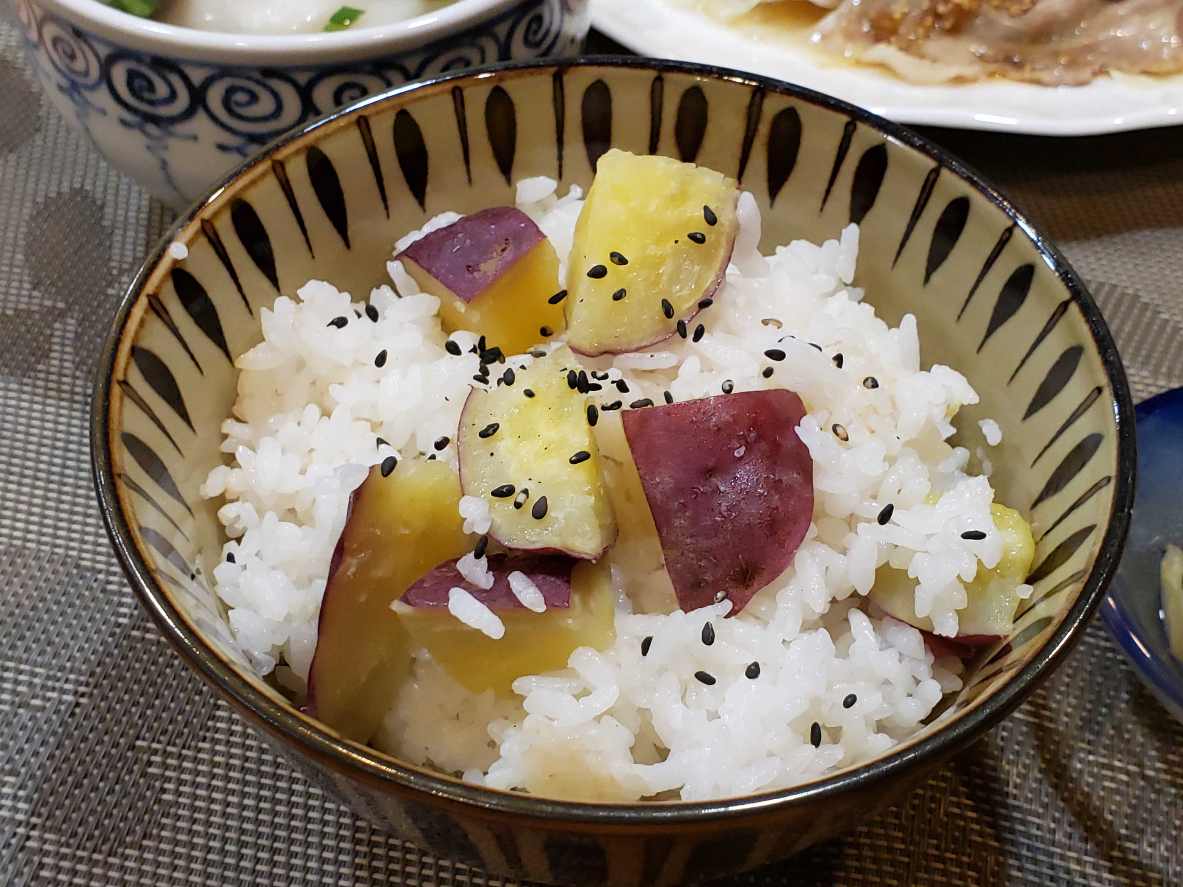 大腸炎なのでよく便が緩くなるパピー、この薩摩芋ご飯を食べると便がきれいになります。