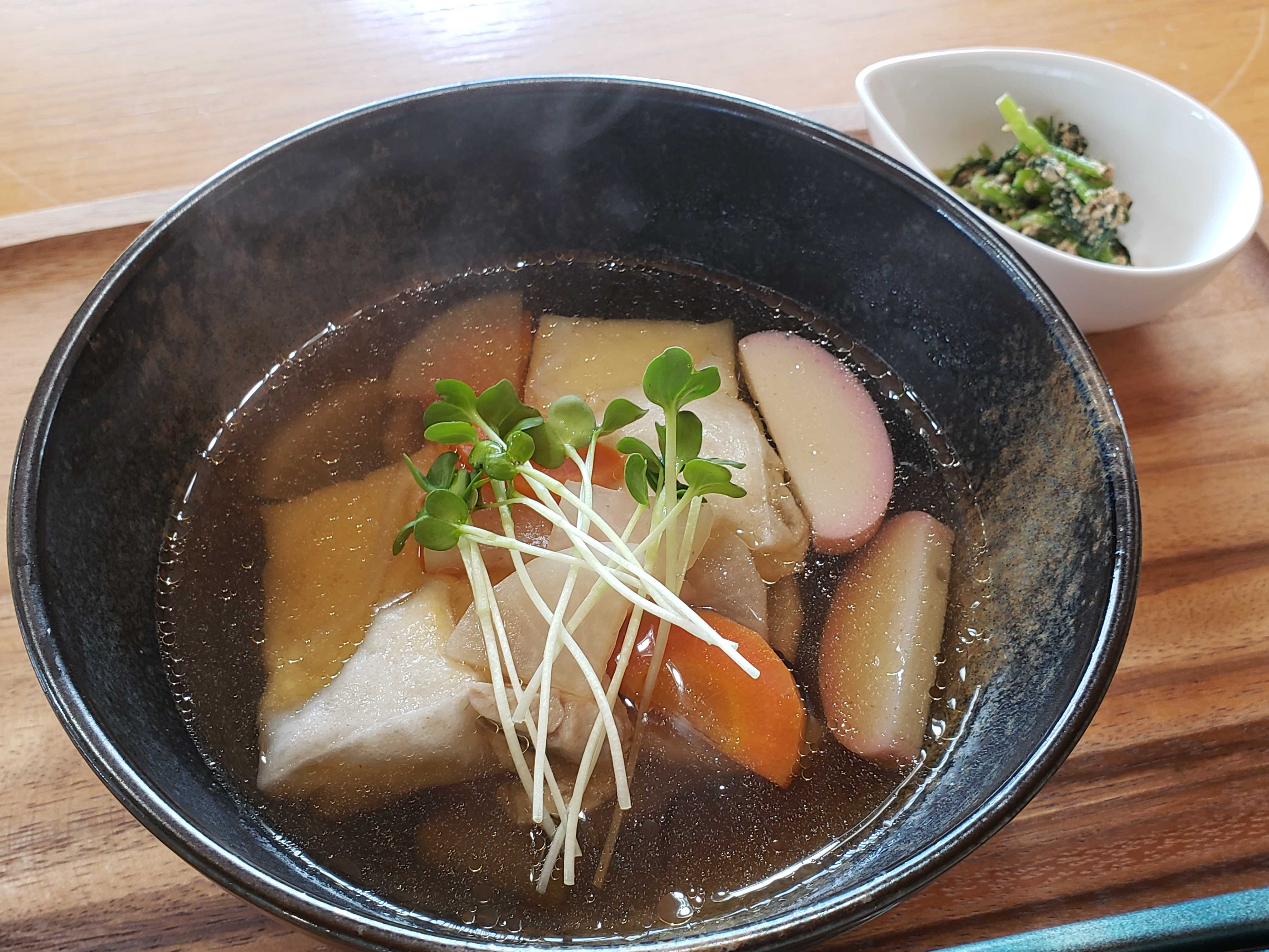 鶏肉、かまぼこ人参、大根のお雑煮でした。
