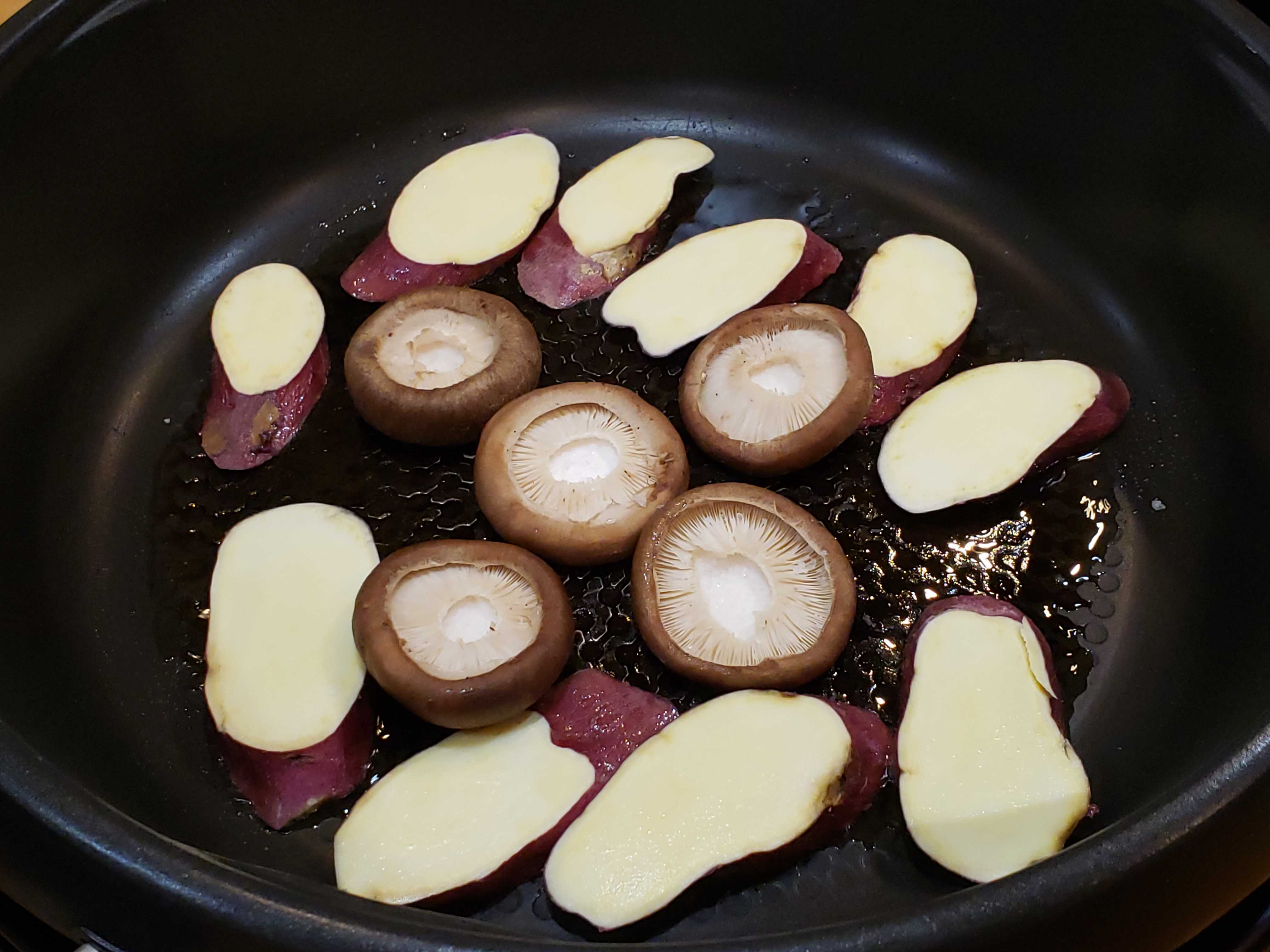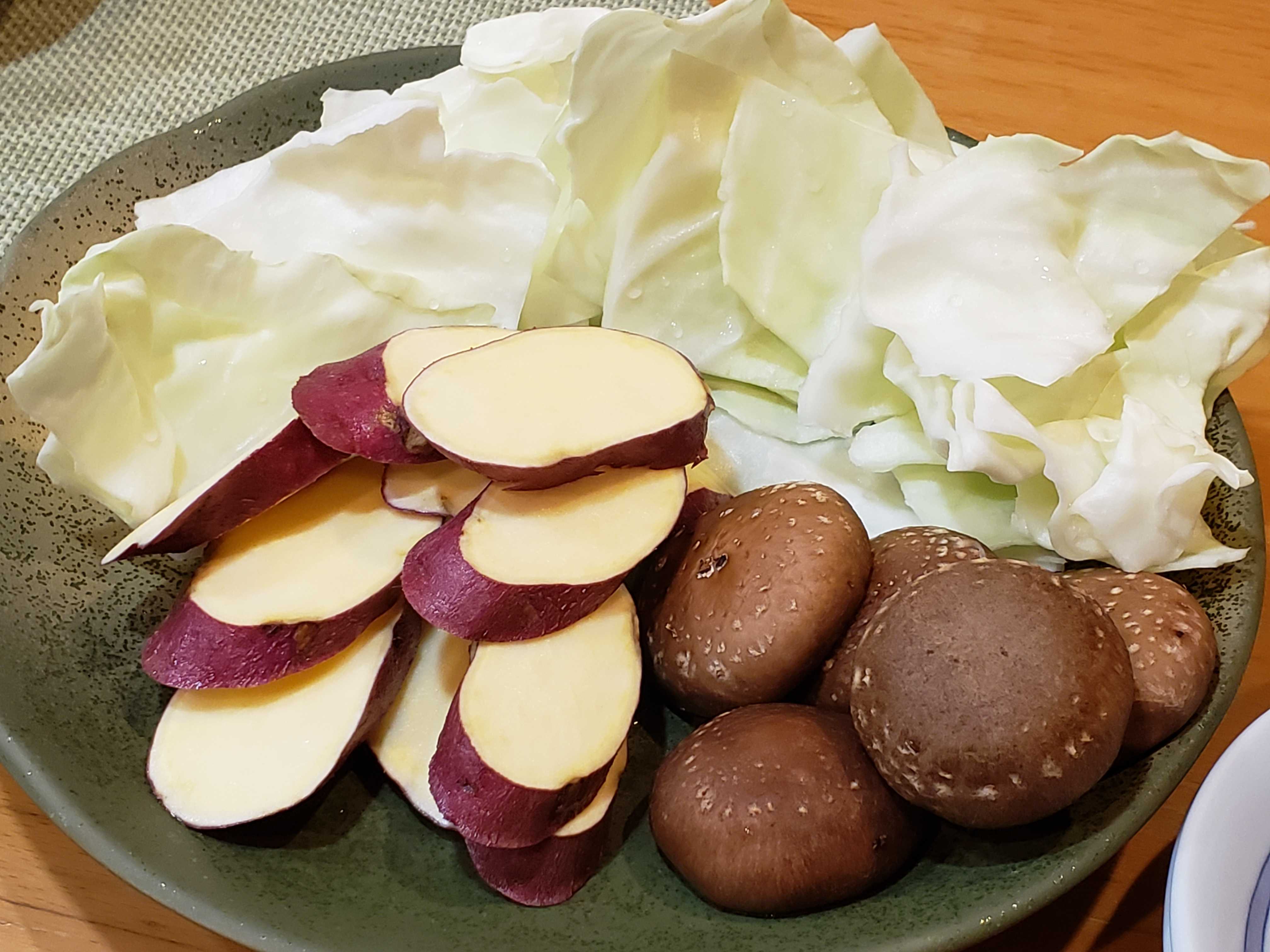 シイタケは塩で、薩摩芋とキャベツは焼き肉のたれでぺろり
