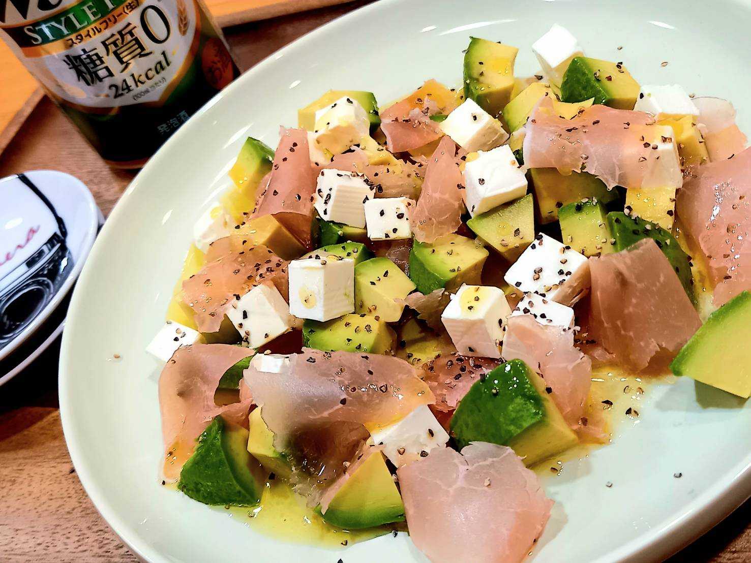 アボカドと生ハム、クリームチーズのサラダから始まり