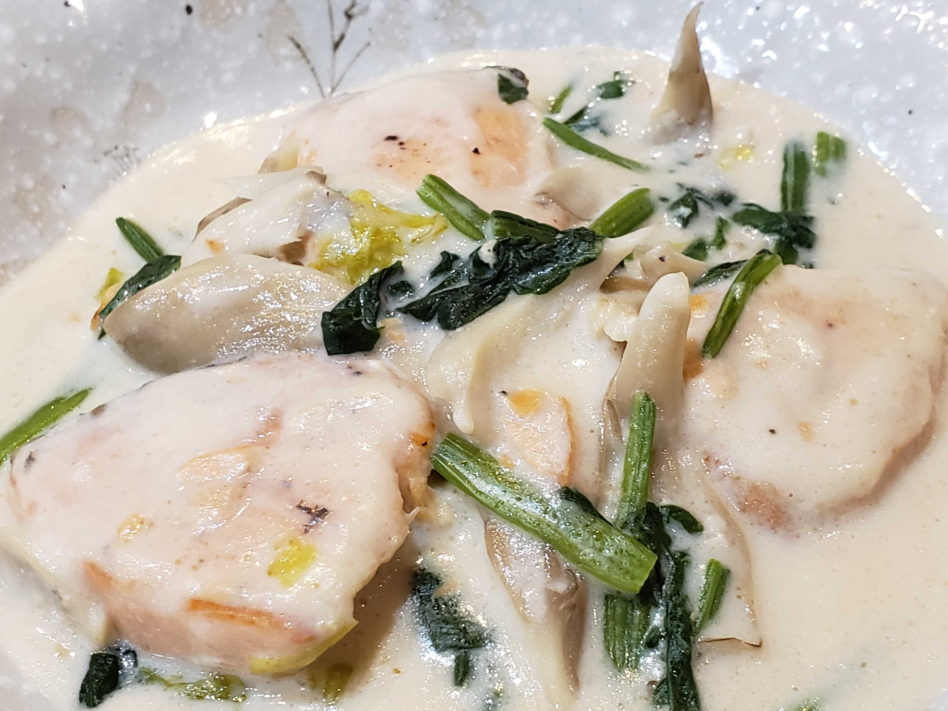 最近よく食べるクリーム煮、今回は鮭、魚介で作るのは久しぶりでした。