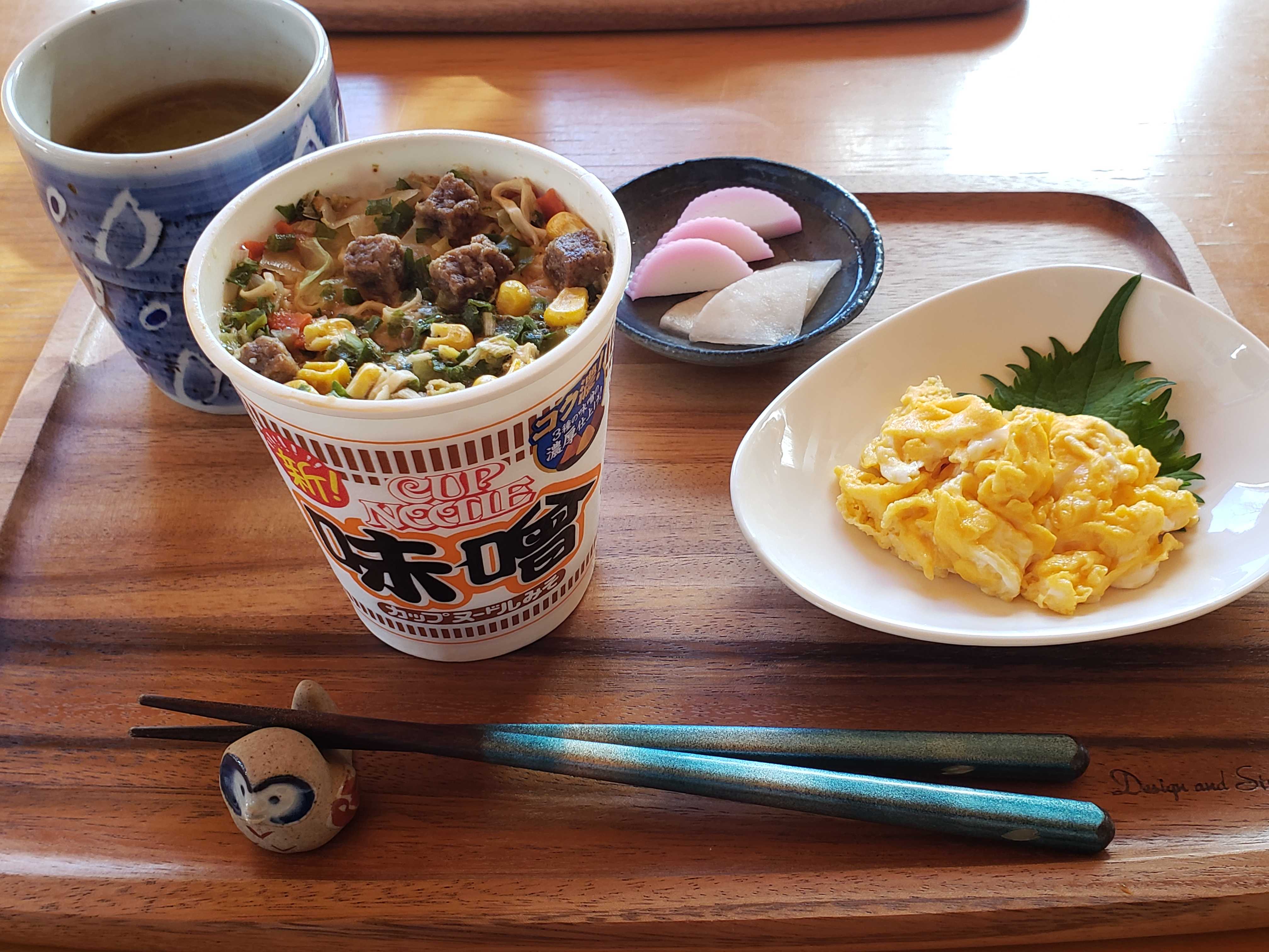 お昼は備蓄のカップ麺、今月が賞味期限もカップヌードルを
