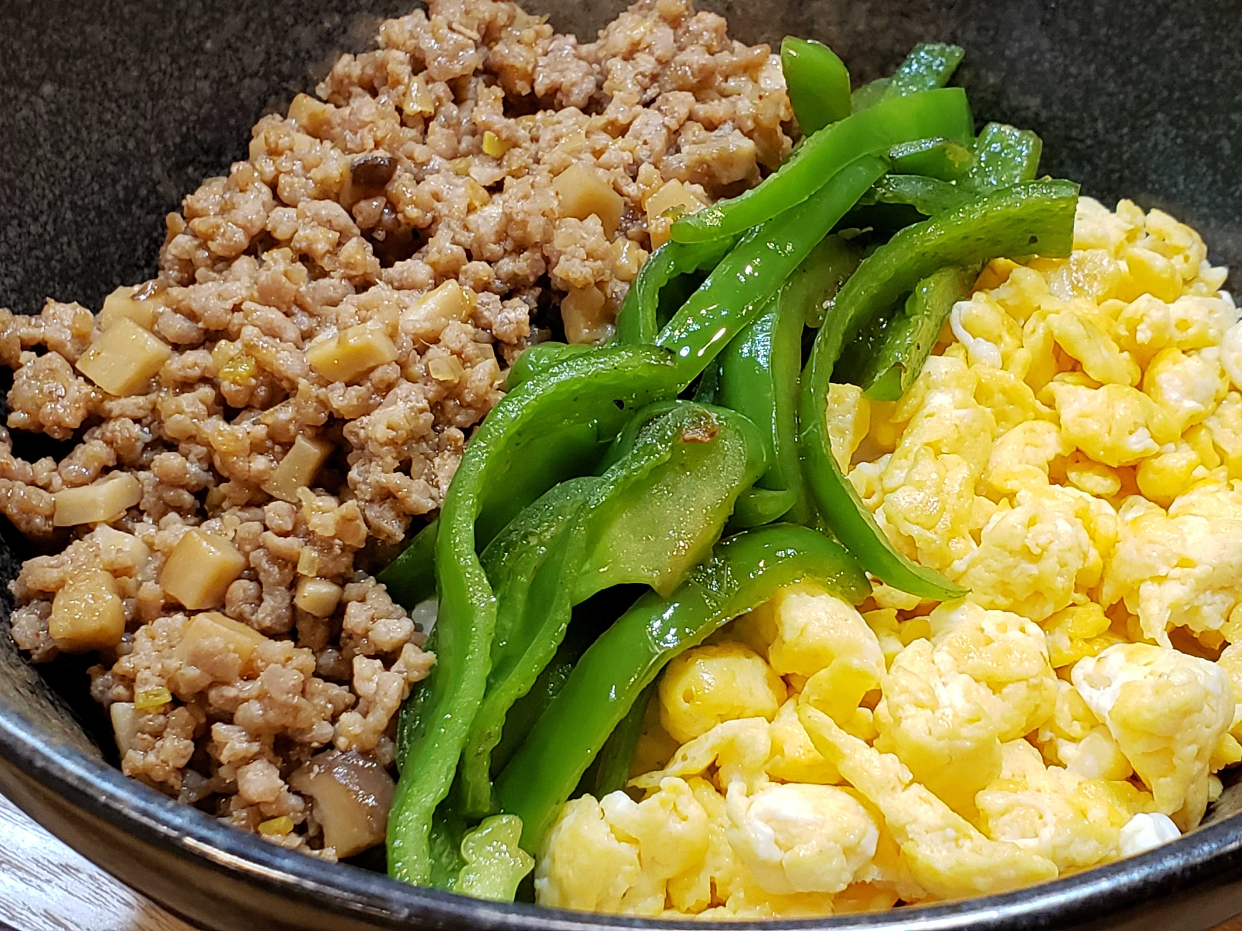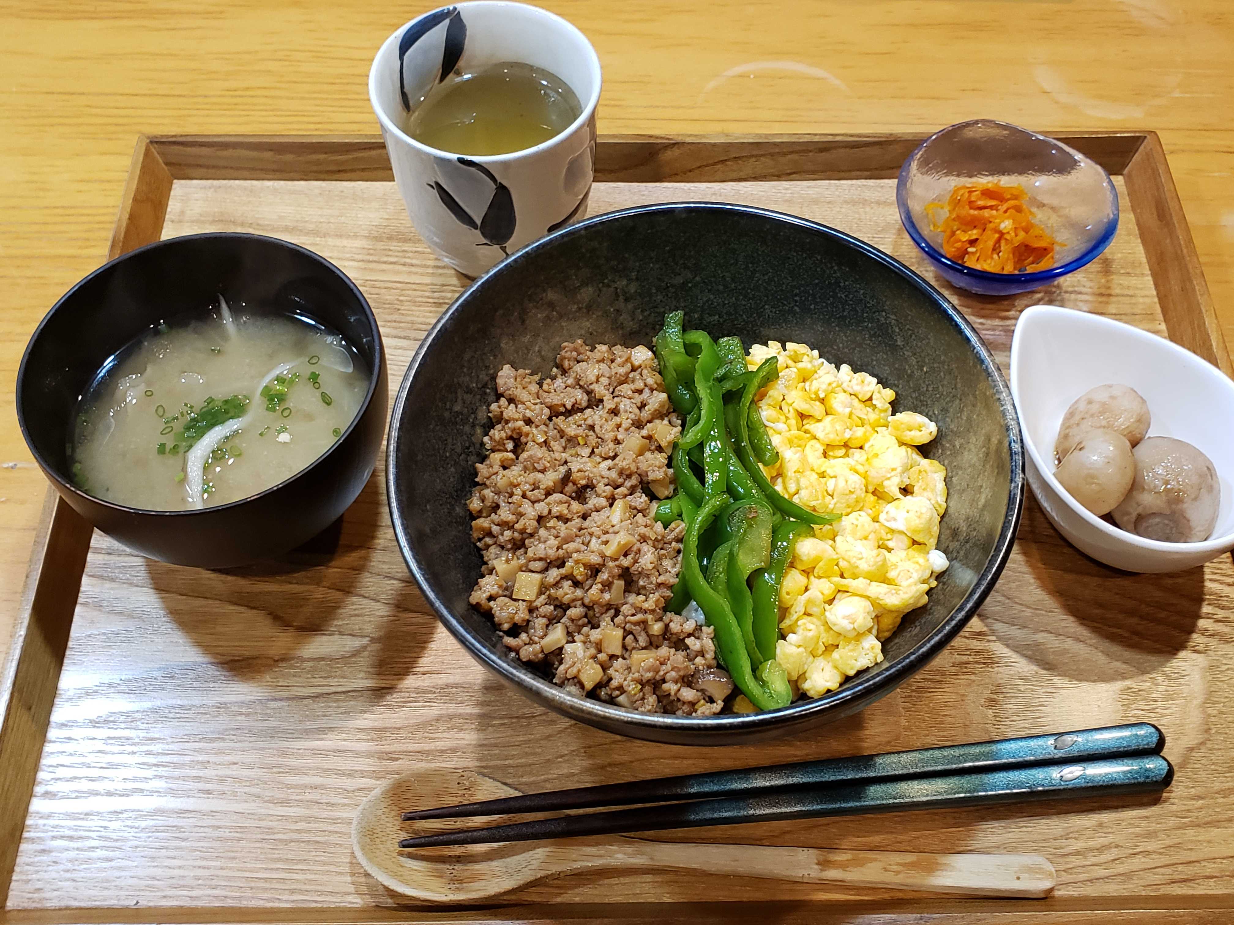肉味噌を作ってもらって夕食は3色丼