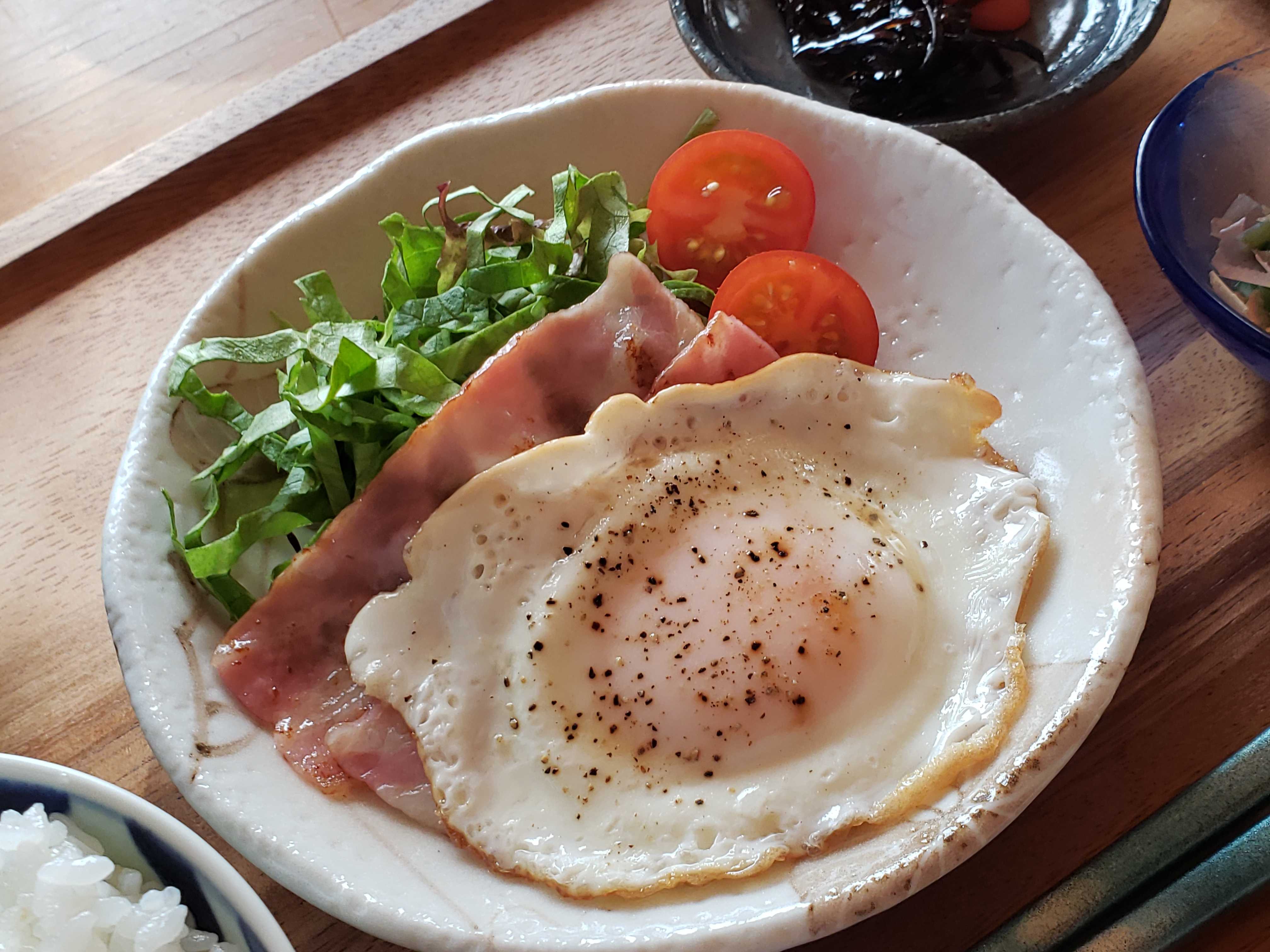 昨日のお昼はベーコンエッグ