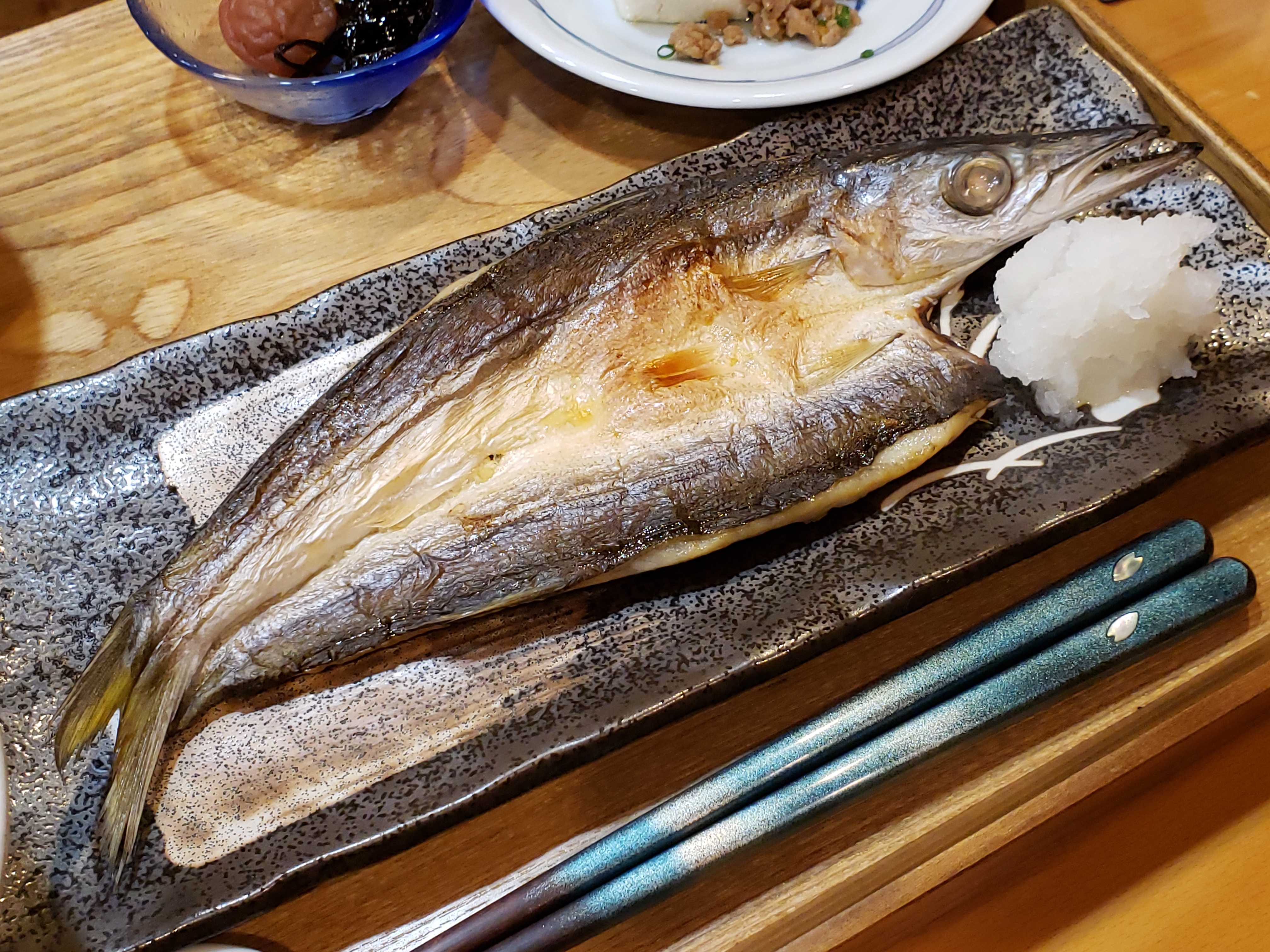 そして、夜はお昼に食べようかと買っておいた干物を
