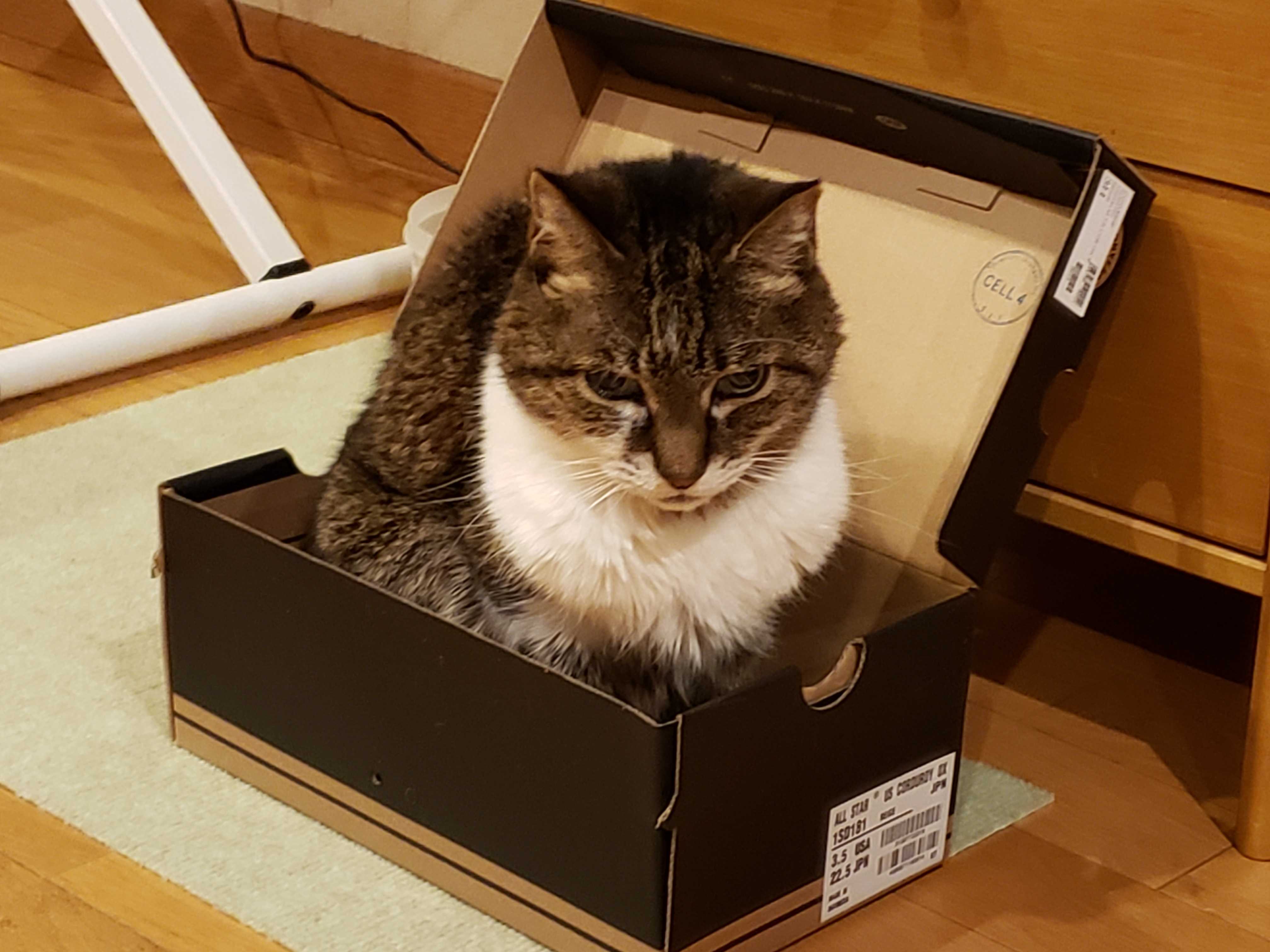 その靴の空き箱にさくらを入れると気に入ったようで出たり入ったり、