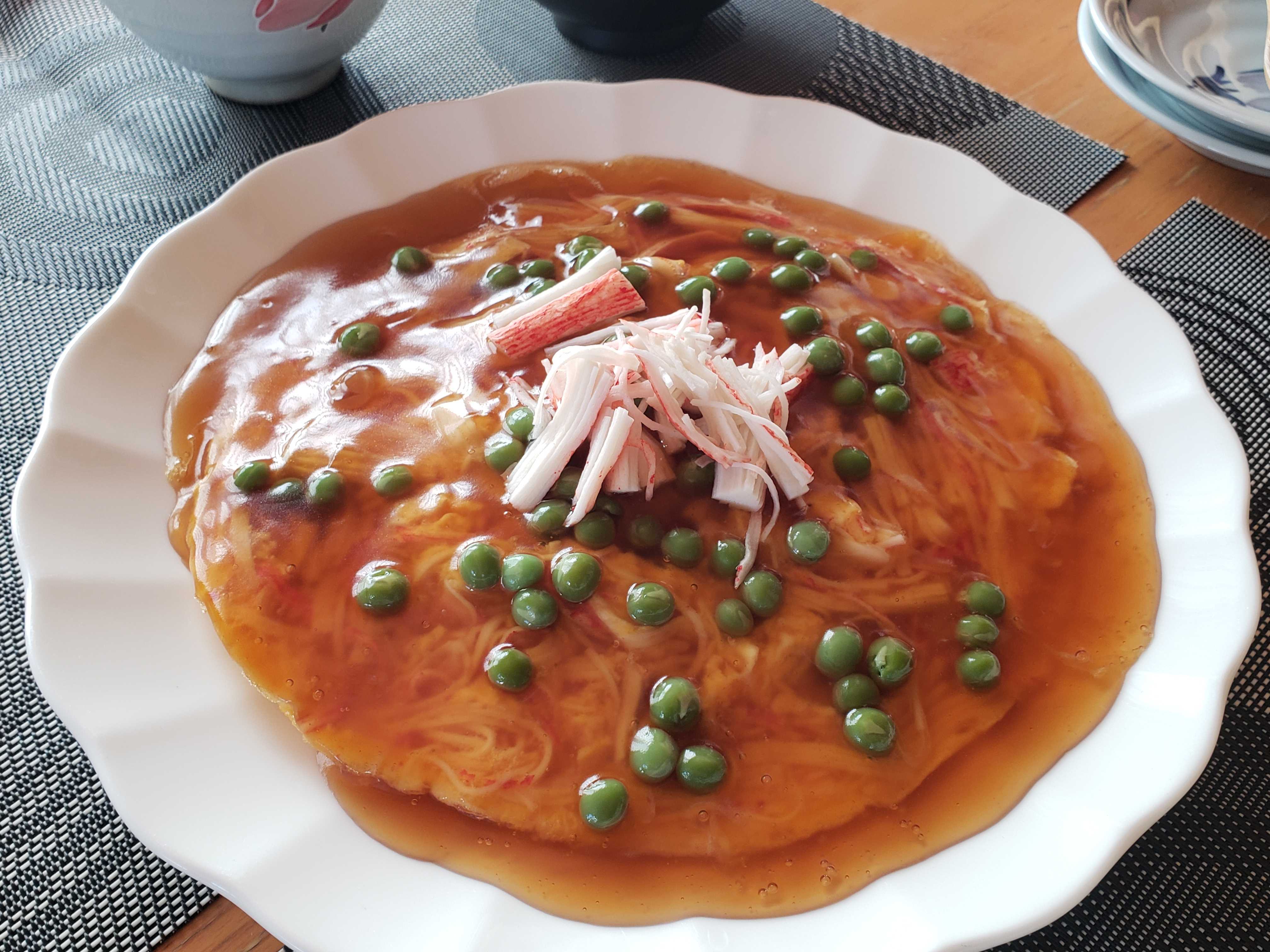 昨日のお昼は前日にお袋さんにも配達したかに玉でした。