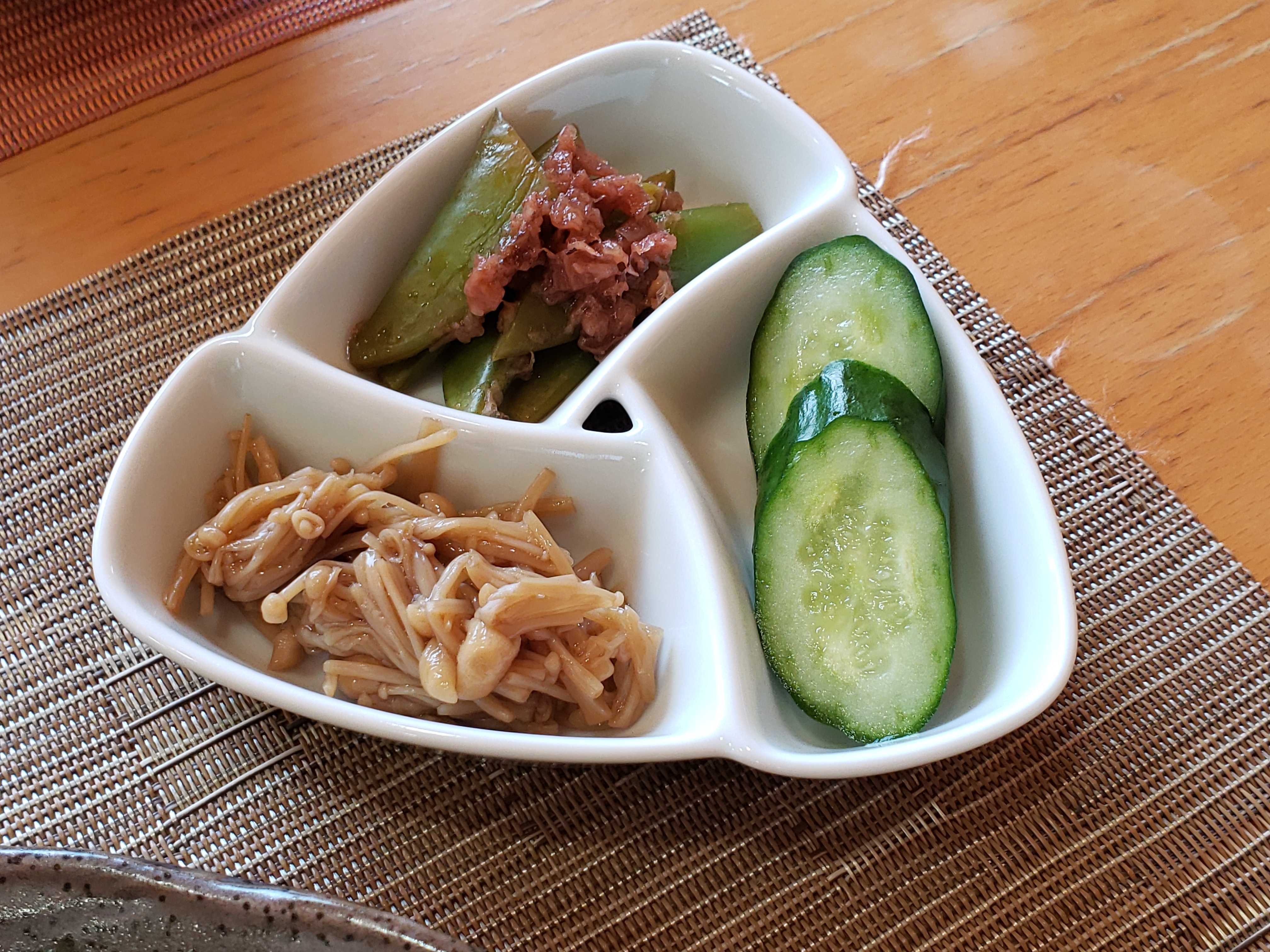 最近食べて無い料理、旬な食材、家にある食材(畑も含む)などを考慮して献立立てて料理、