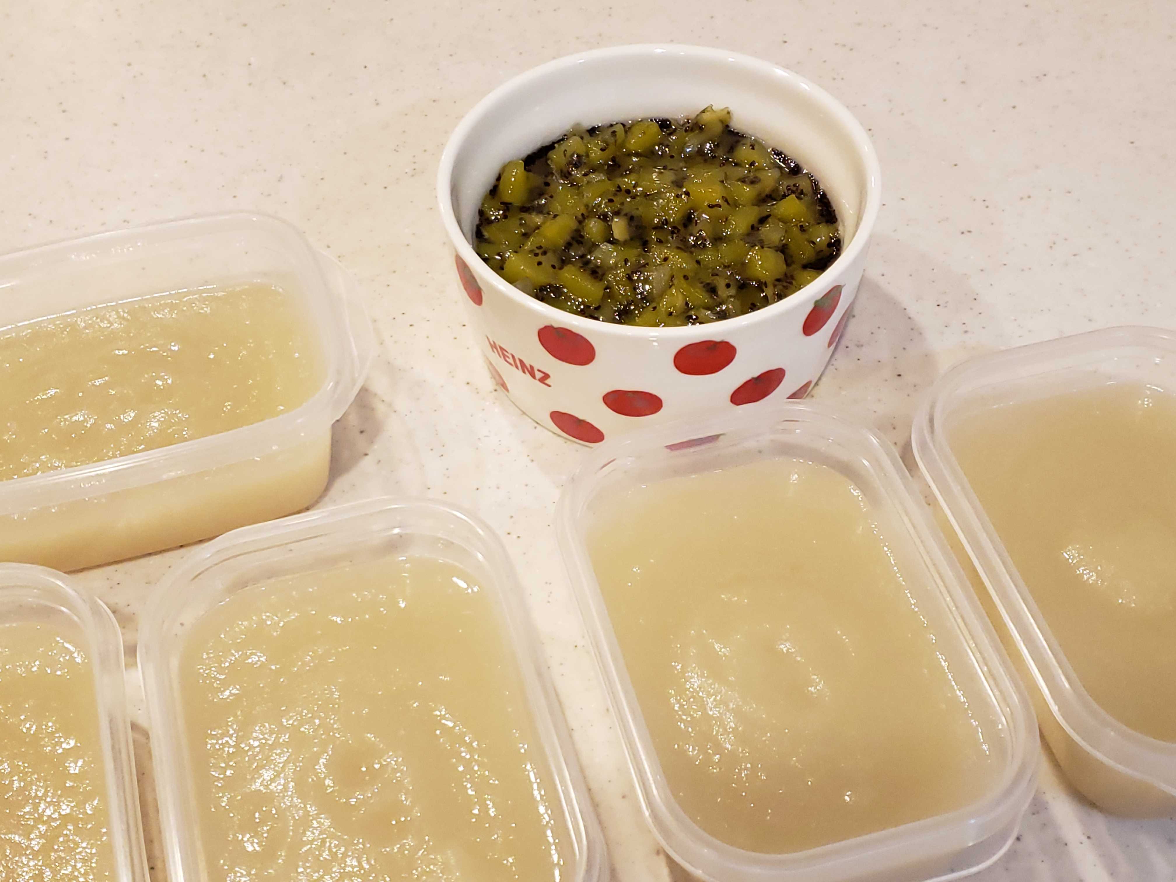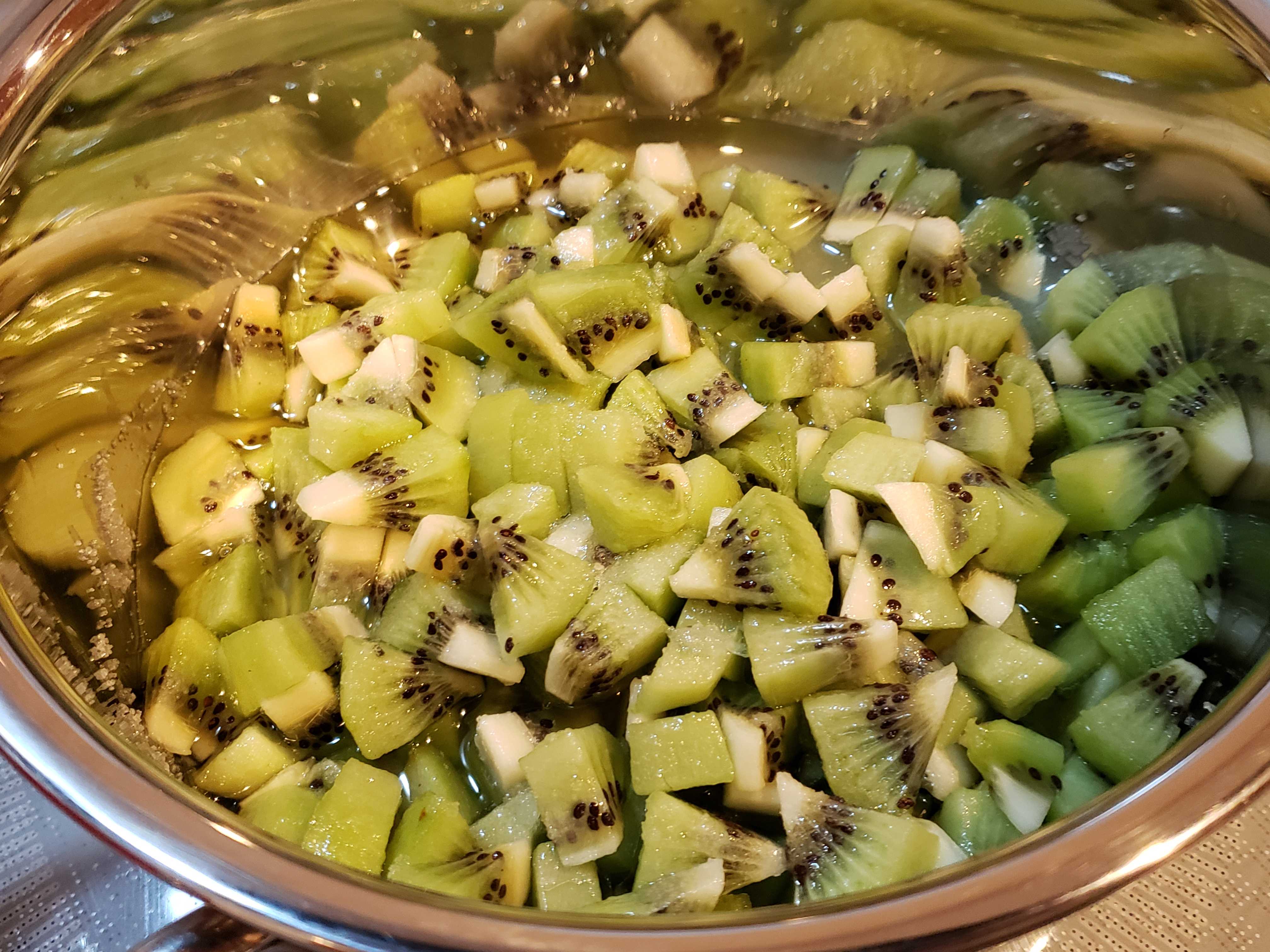夕食前にパピーはお勝手で一仕事、キウイのジャムと蕪のポタージュのペーストを作りました。