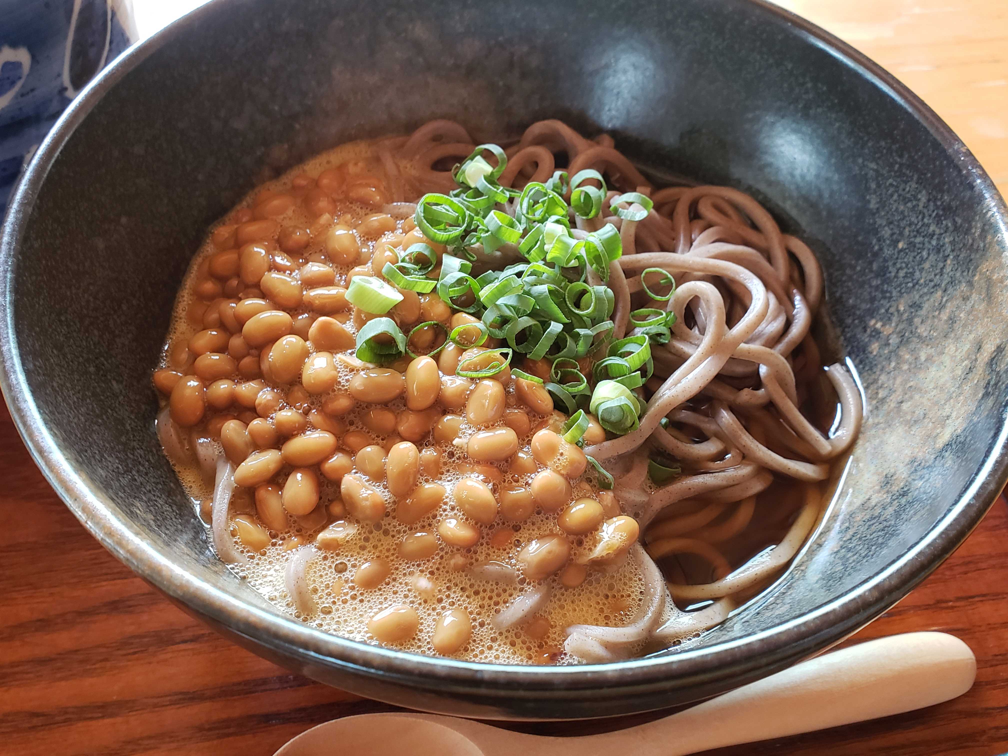 お昼は簡単に卵納豆蕎麦を