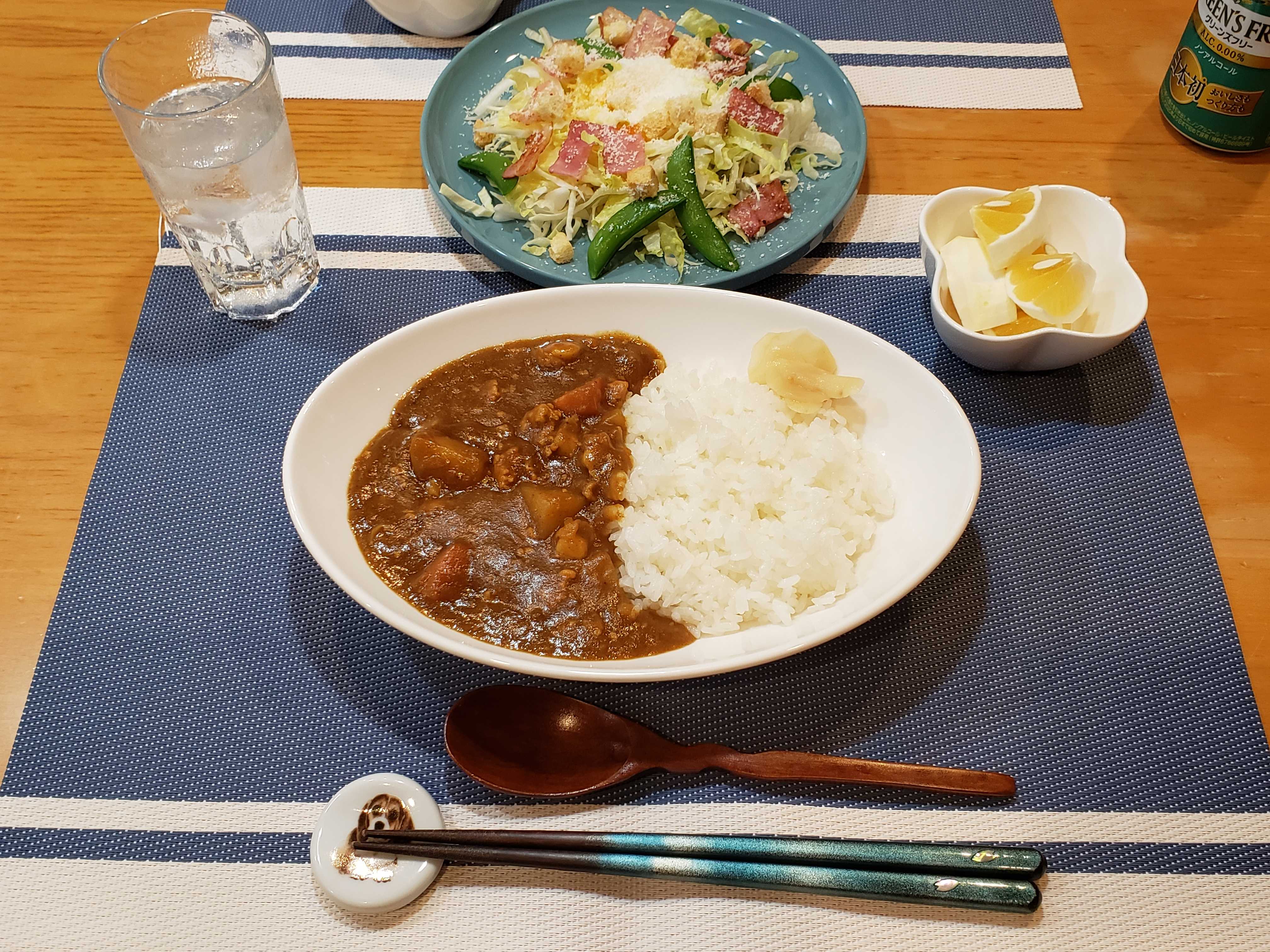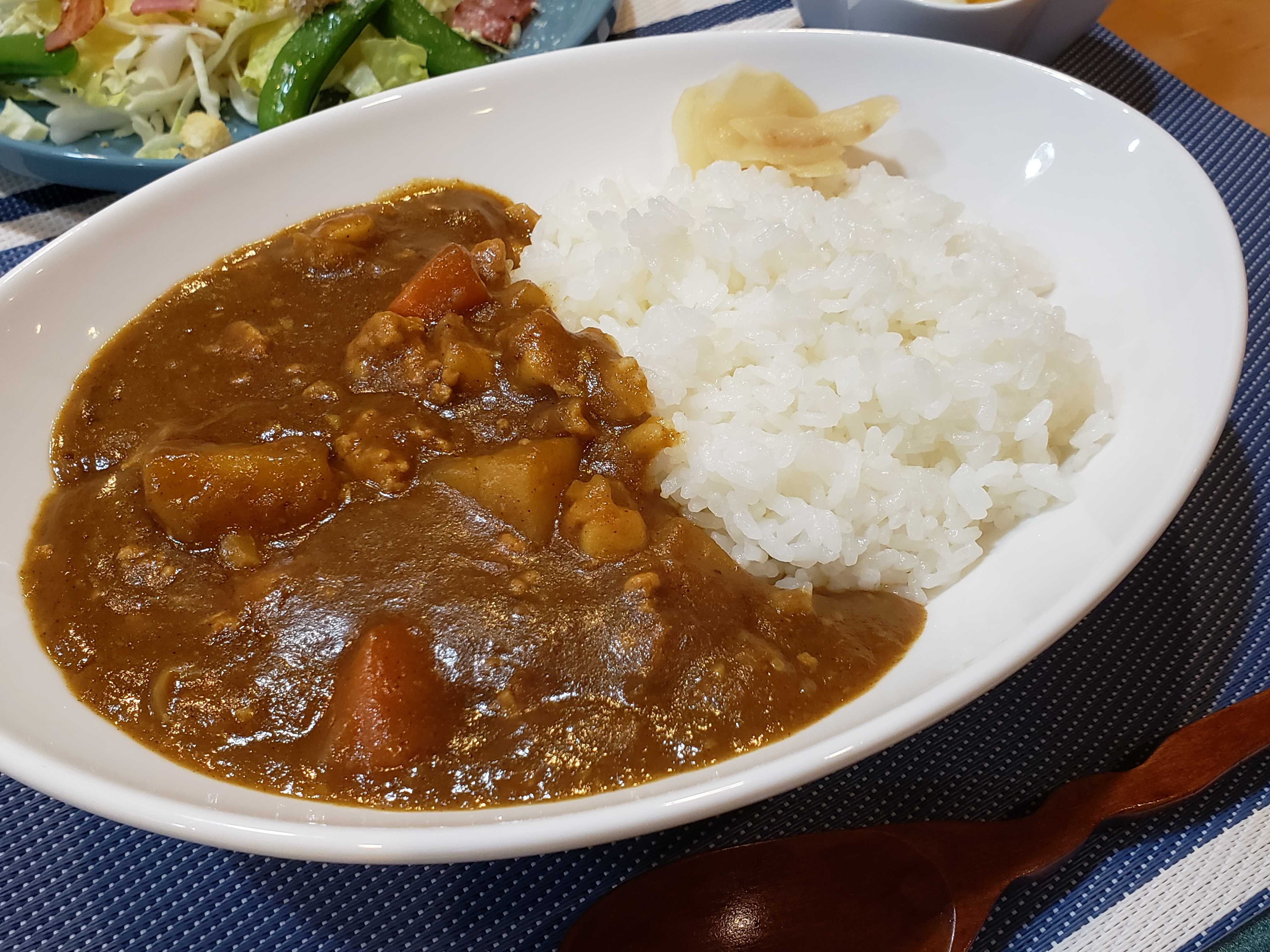 家に帰るなりエプロン姿になるパピー、作ったのは軟骨カレーでした。