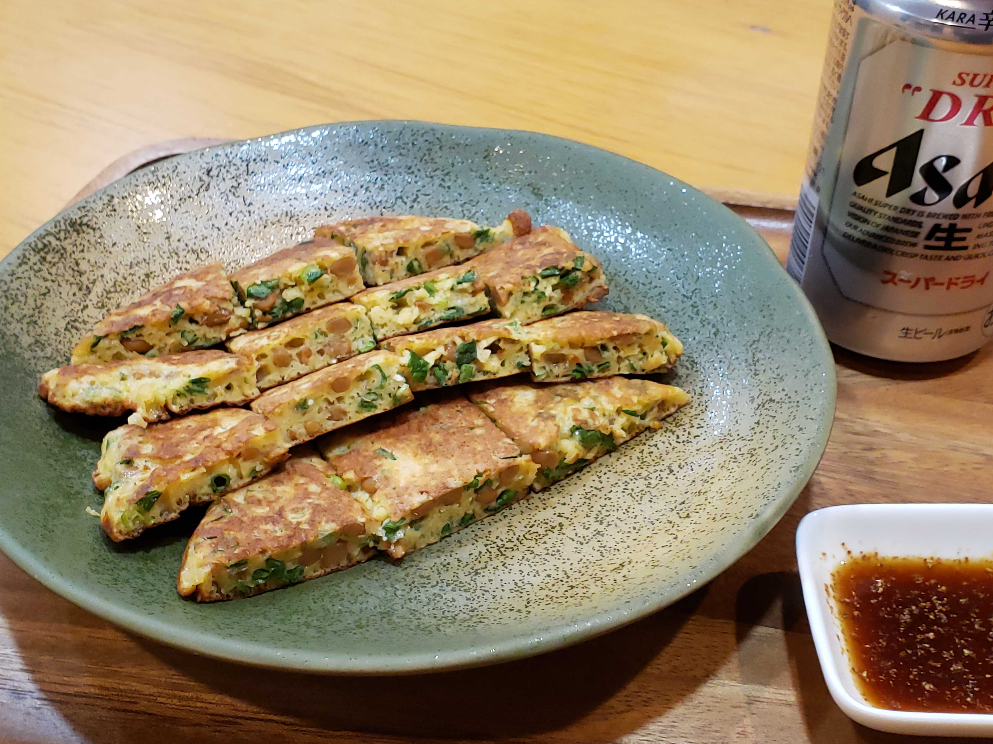 つまみには納豆ねぎ焼き