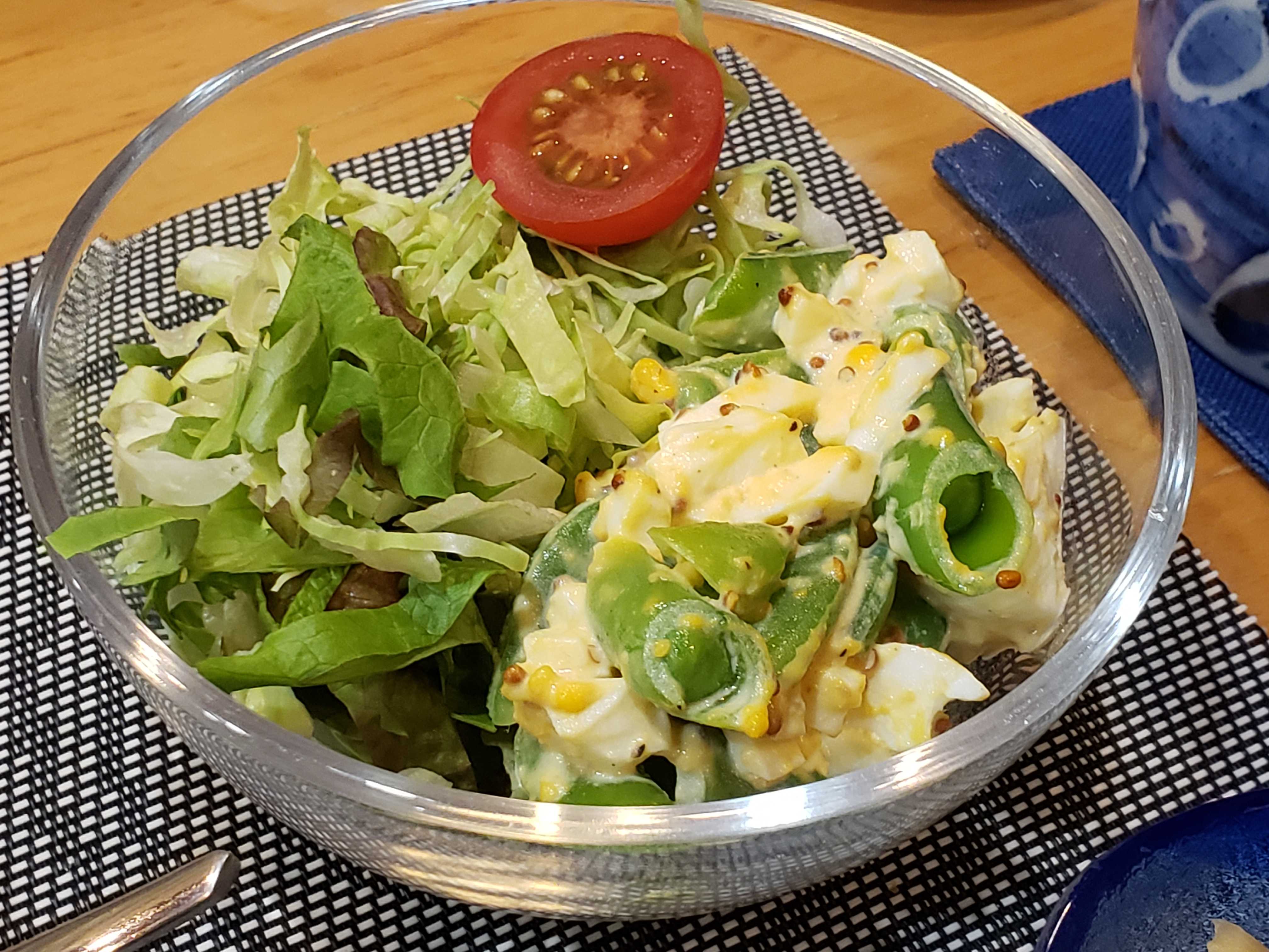 スナップエンドウとゆでたまごのサラダ レタスサラダ