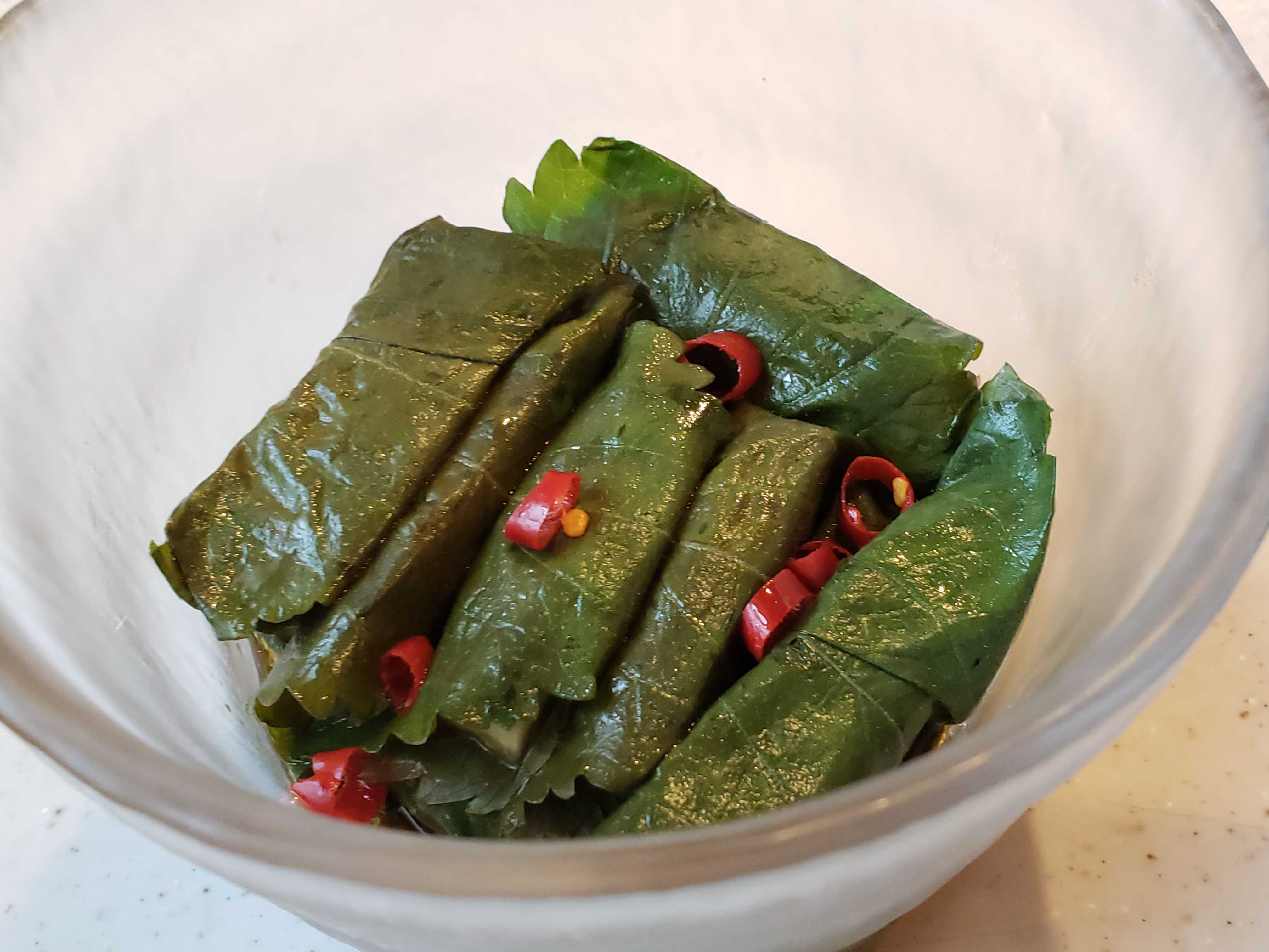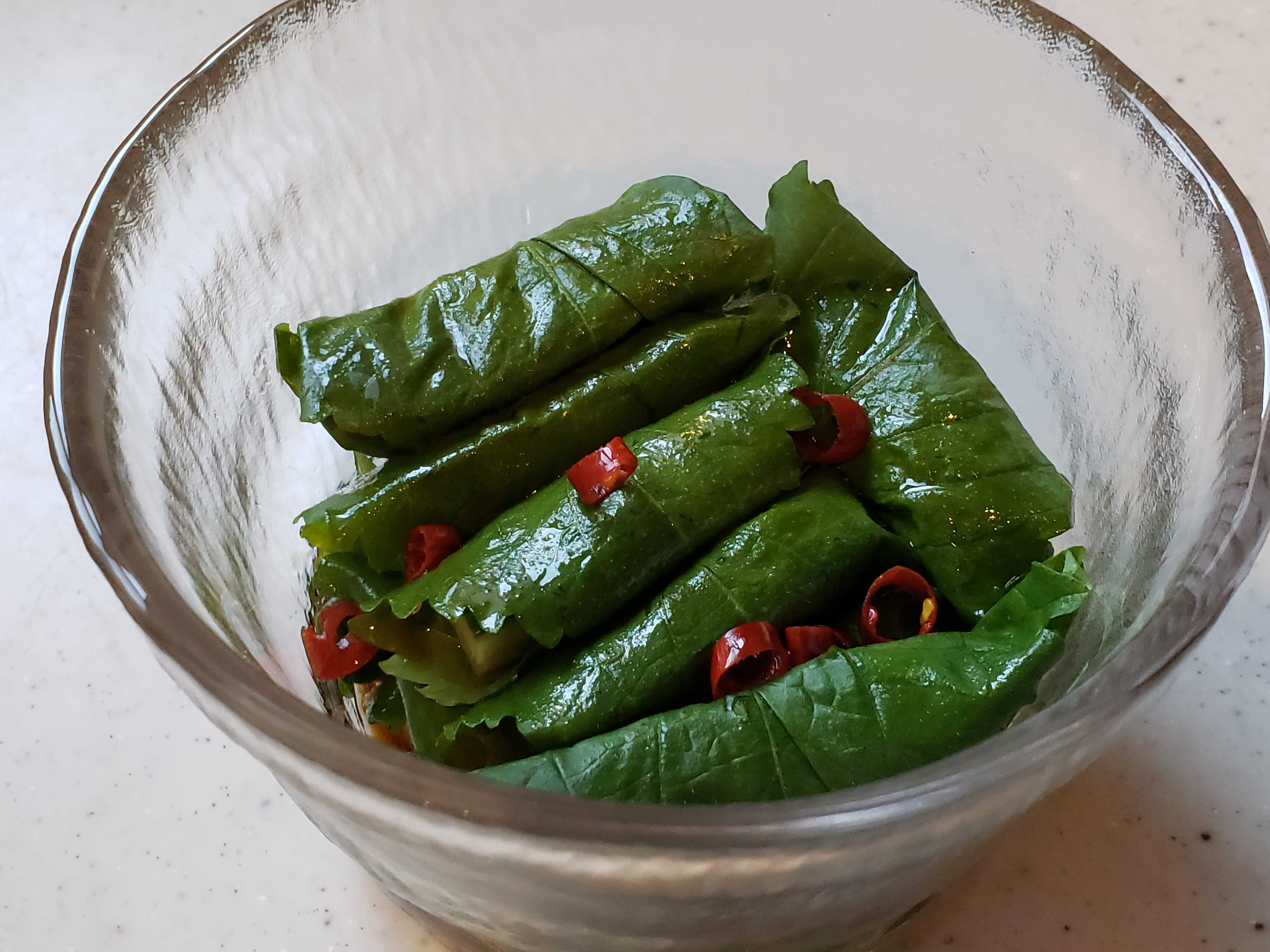 庭から大葉を16枚採ってきてきゅうりを巻いて、