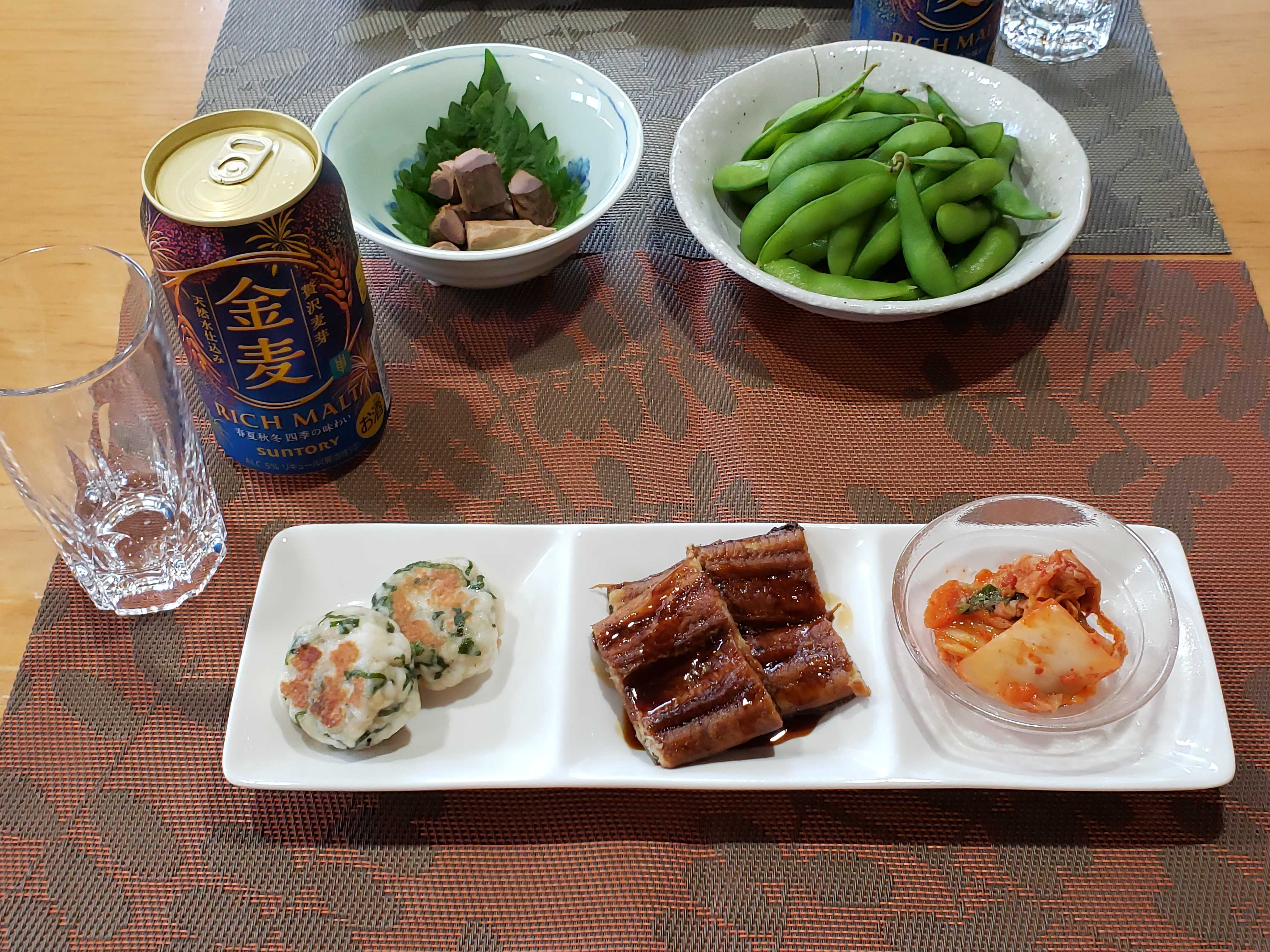 鰻は小さいサイズを女房と半分こ、プチ贅沢です。